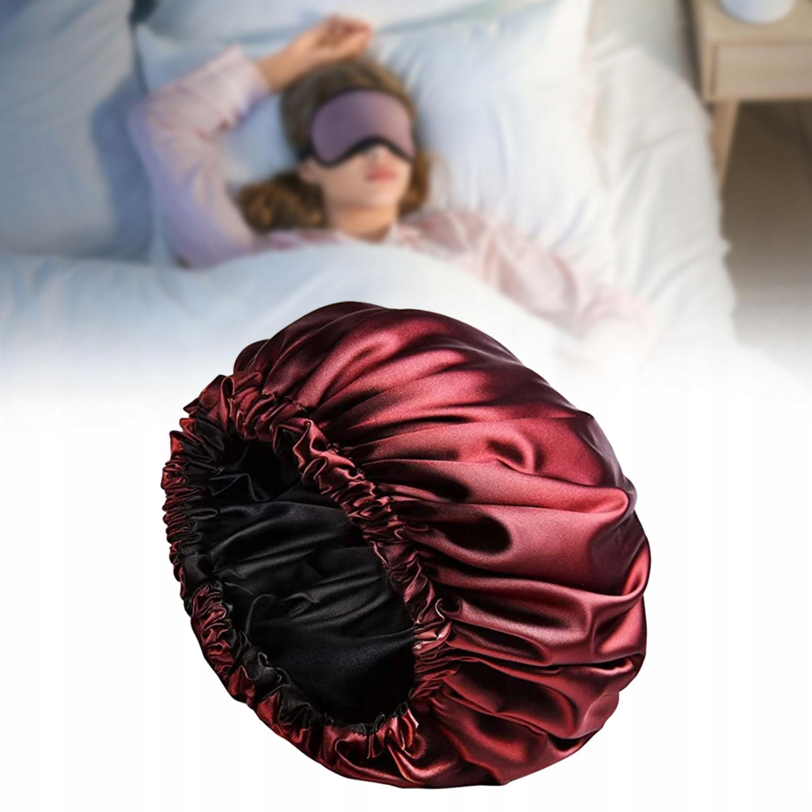 [атласна шапка]: Жіноча атласна шапка може ефективно зменшити тертя між волоссям і подушкою, запобіганням, заплутаним та сушінням, таким чином ефективно захищаючи волосся. Він подвійний, і його можна носити з обох боків.