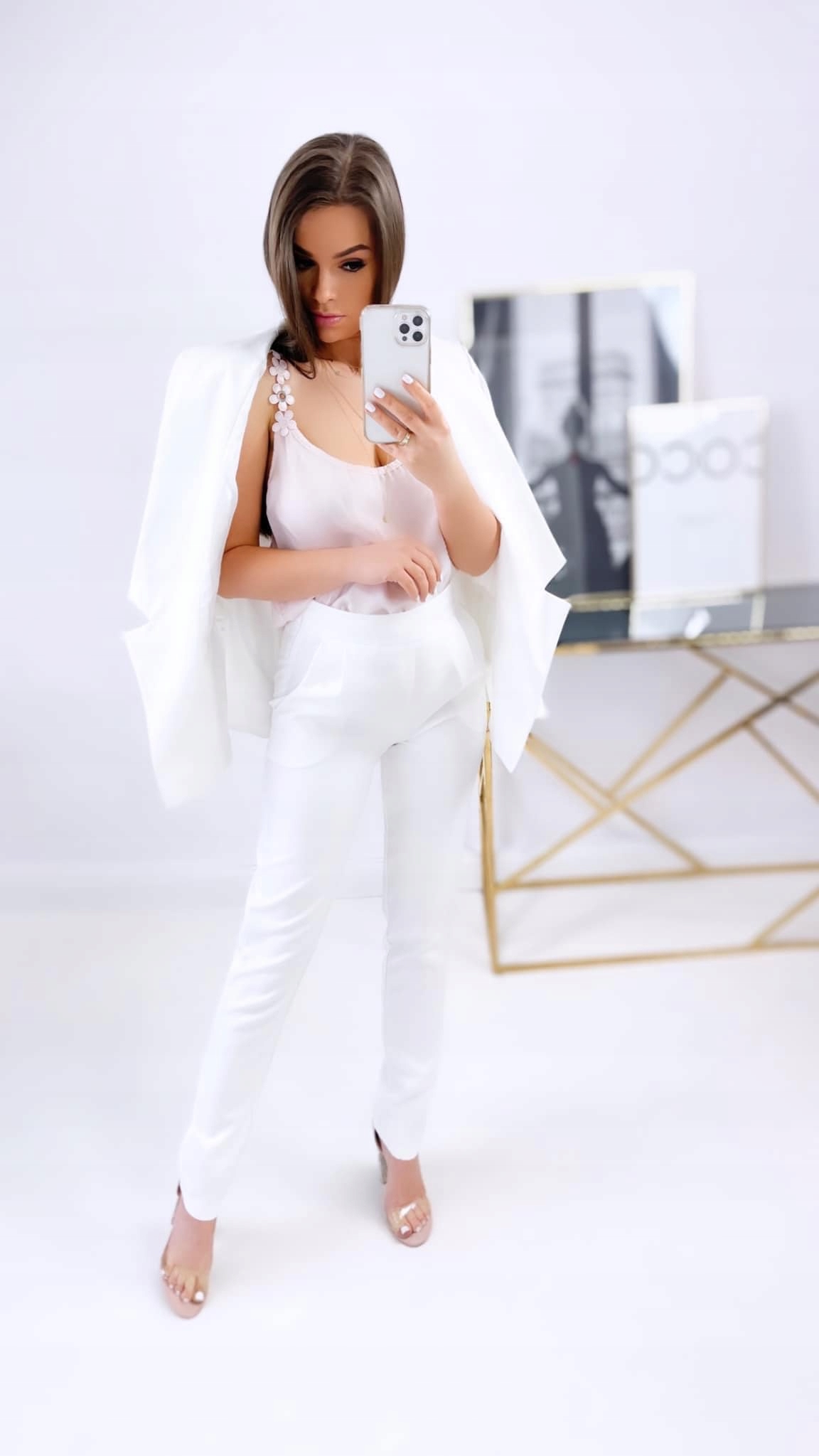 Класичний жіночий комплект/костюм. КУРТКА + ШТАНИ БІЛОГО кольору