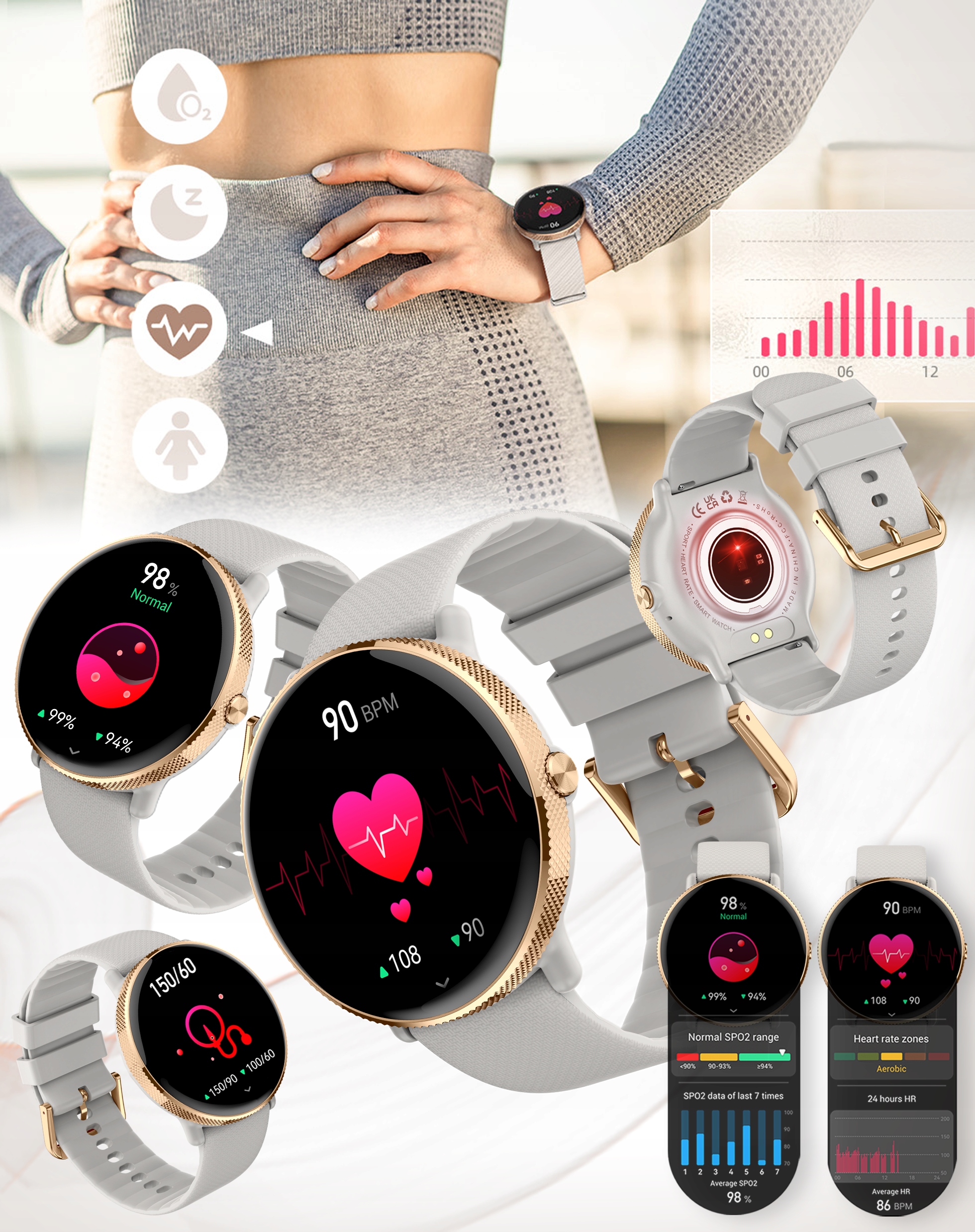 Наш розумний годинник — це не тільки стильне доповнення до вашого вбрання, але й помічник у здоров'ї та самопочутті. Завдяки вбудованим датчикам ви можете контролювати свій ЧАСТОТА СЕРЦЕБІВ, ТИСК, КРОВ'ЯНИЙ ТИСОК, РІВЕНЬ КИСНЮ В КРОВІ і ЯКІСТЬ СНУ, що дозволяє точно відстежувати стан вашого здоров’я та фізичну форму. Годинник збирає та аналізує зібрану інформацію, щоб ви могли легко відстежувати свій прогрес.