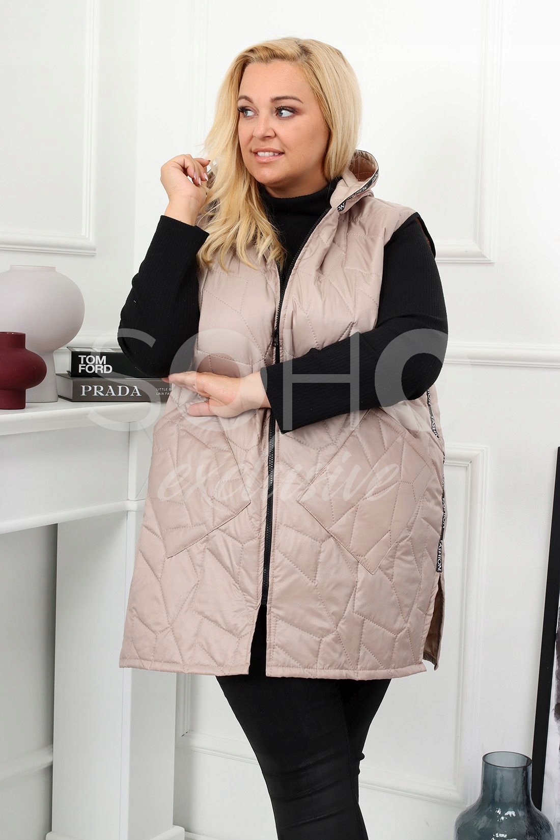 ЖІНОЧИЙ СЬОГАНИЙ ЖИЛЕТ 60 10XL БЕЖЕВИЙ
