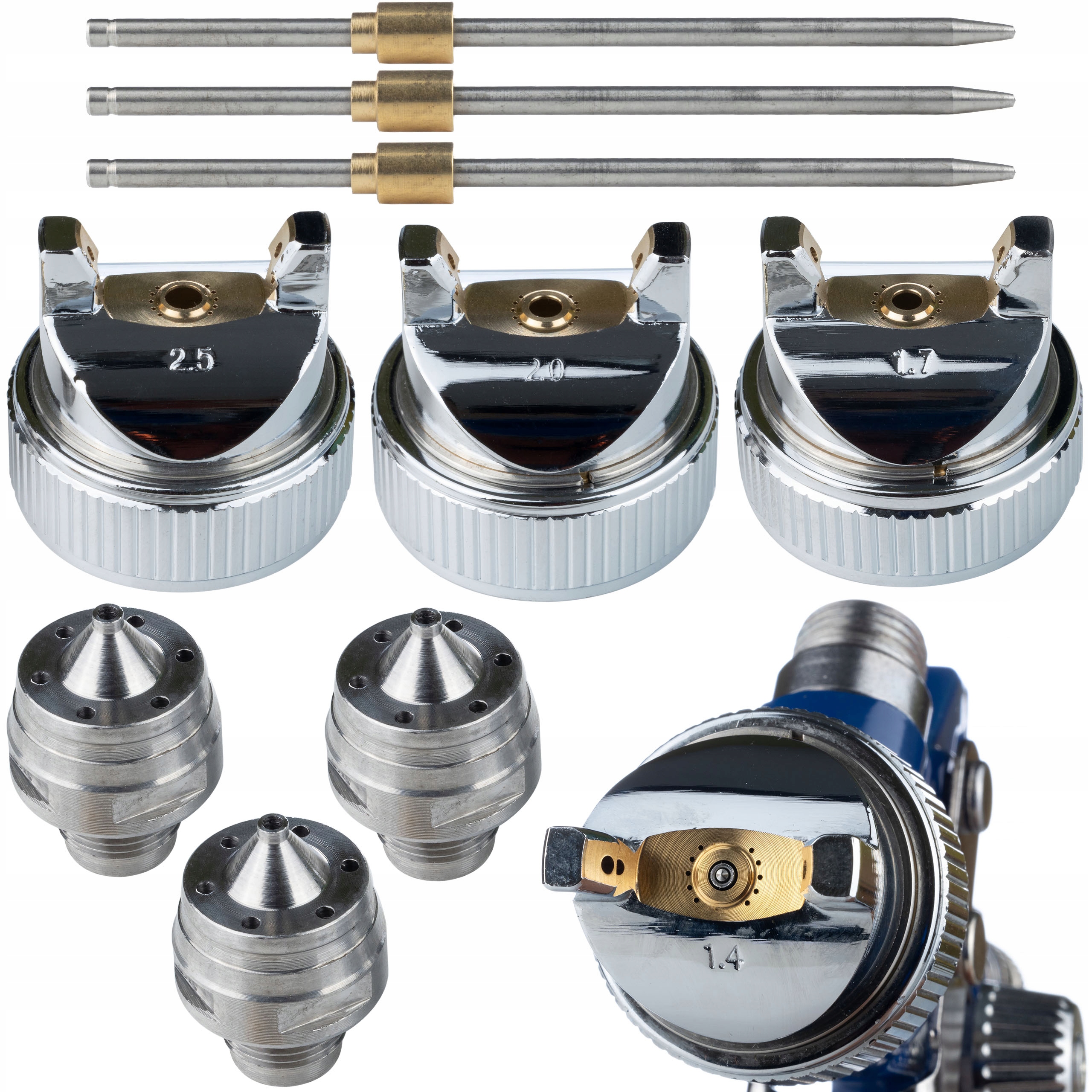 ✅ різні форсунки: Чотири різні форсунки з голками (1,4 + 1,7 + 2,0 + 2,5) дозволяють налаштувати пістолет на різні типи фарб.