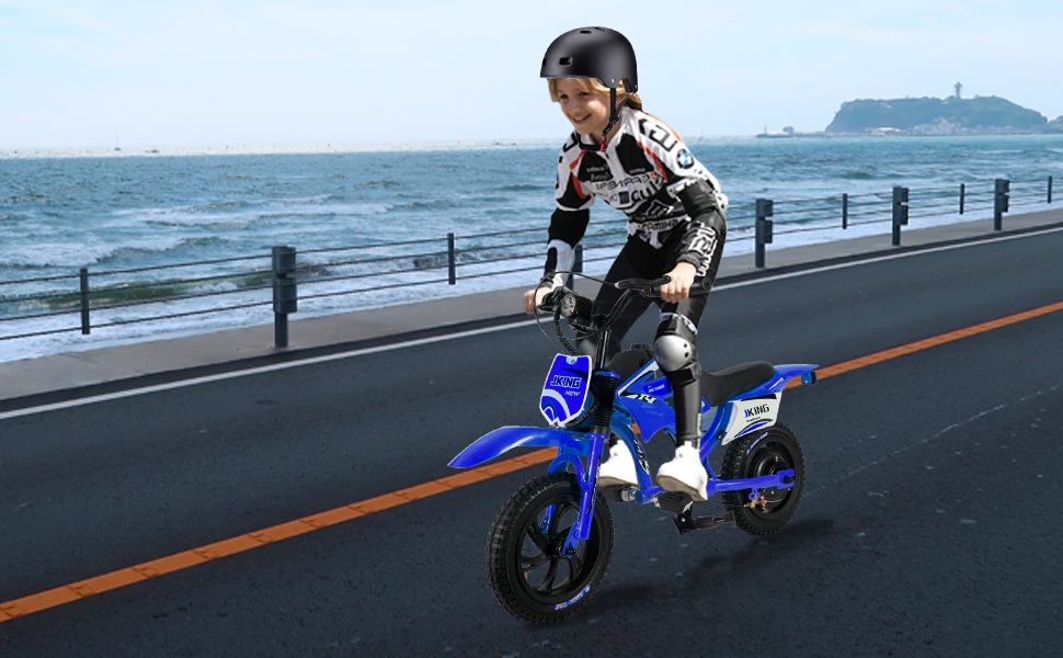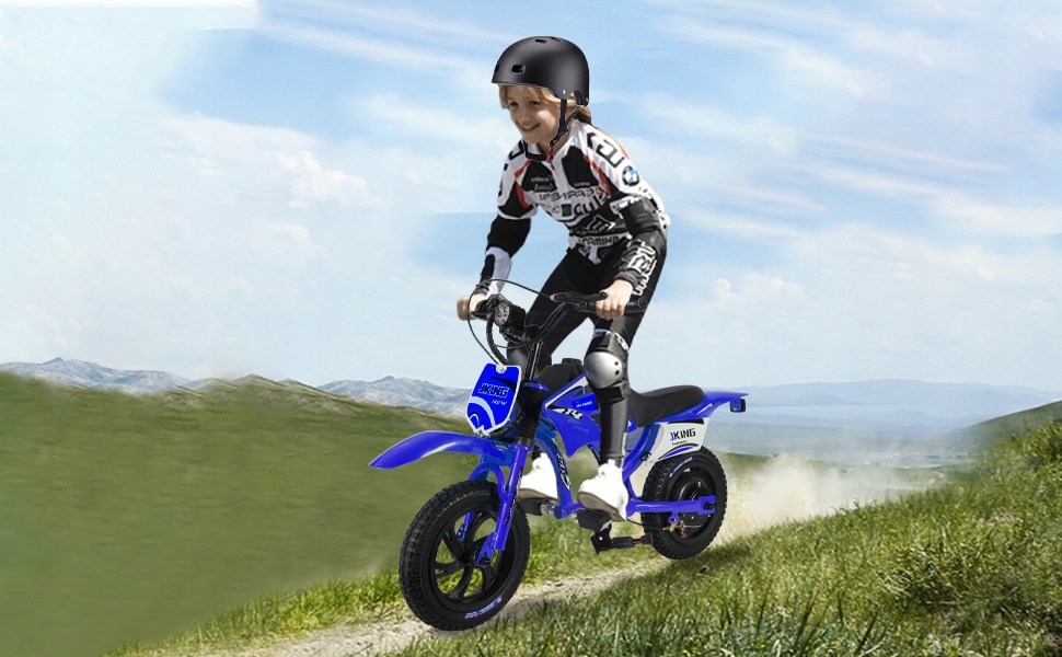 Мотоцикл для дітей приймає 12-дюймовий безщітковий двигун з 160 Вт (пікова потужність 300 Вт), оснащений акумулятором 25,2 В 2600 мАг, 8,6-10 миль/м/год та матеріалами, що не має безглуздого та безглуздості. Забезпечуючи довгострокову продуктивність та підтримуючи до 110 фунтів ваги, стійкі колеса також забезпечують стабільне водіння в більшості районів.