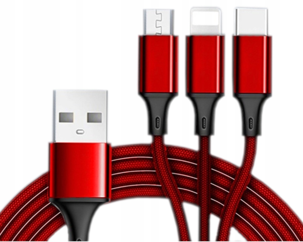 МІЦНИЙ НЕЙЛОНОВИЙ КАБЕЛЬ 3-В-1 З ОБПЛІТЕННЯМ 113 СМ