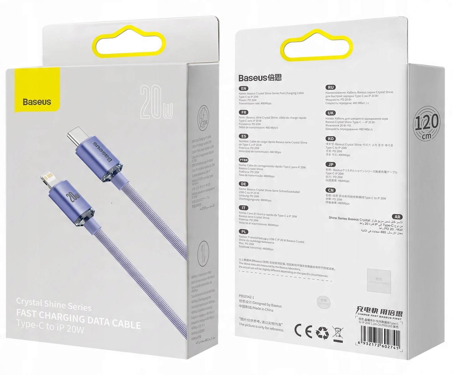 - Модель: Crystal Shine Series Fast Charging Data Cable Type-C to iP 20W 1.2m Purple