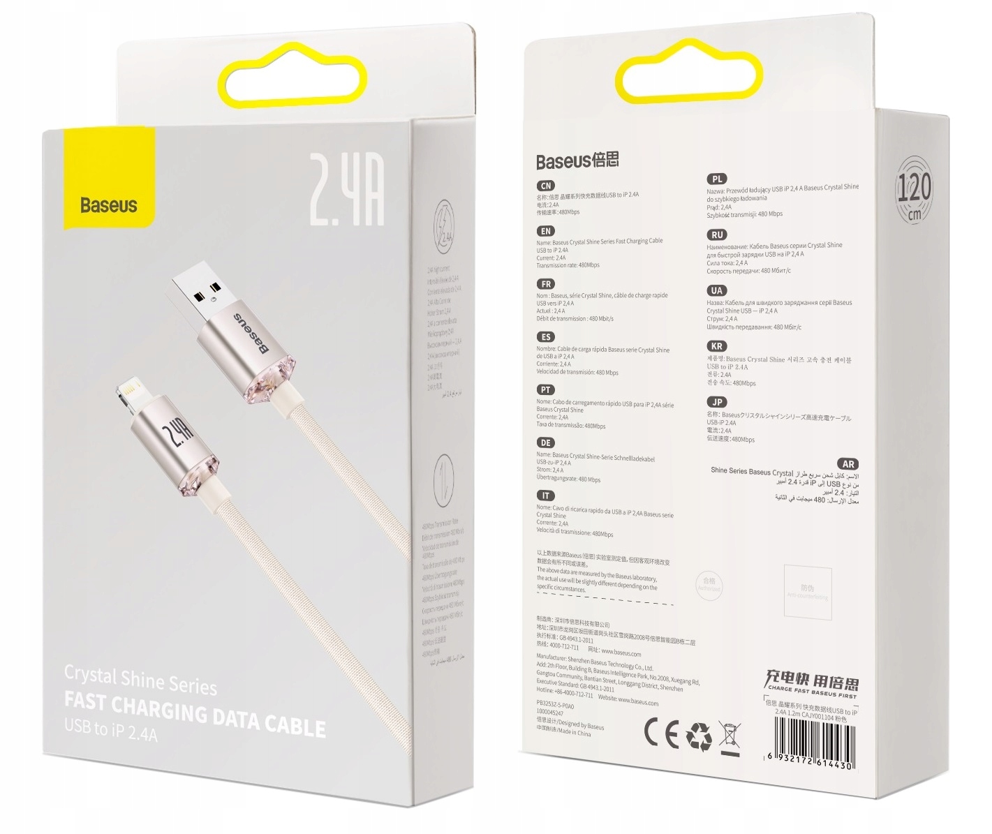 - Модель: Crystal Shine Series Fast Charging Data Cable USB to iP 2.4A 1.2m Pink
