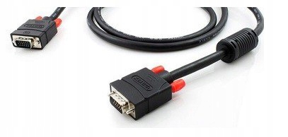 Кабель VGA - VGA довжиною 1,5 м. Зовнішній діаметр: 7,8 мм. Феритовий фільтр. Сигнал, що передається: Відео. Колір: чорний. Нікельований.