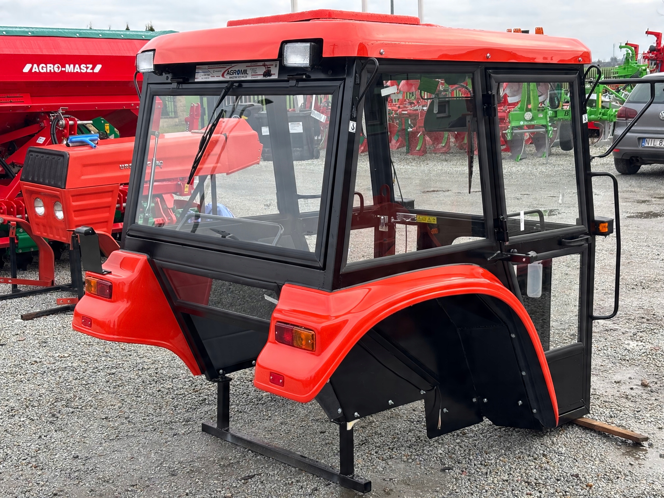 Всі вироби виготовлені зі сталевих профілів, що забезпечує належну жорсткість і довговічність конструкції, гарантуючи безпеку користувача. Внутрішня частина кабіни оббита та ущільнена, що підвищує комфорт користувача. Вікна виготовлені із загартованого скла та вмонтовані в спеціальні гумові ущільнювачі, які гасять вібрації та герметизують салон. Кожна кабіна має декларацію відповідності ЄС та сертифікат. Кабіни обладнані склоочисником, дзеркалами та електроустановкою, адаптованою до даного трактора. Кожна кабіна за розмірами відповідає даному типу трактора, а також додається набір кріпильних елементів, що дозволяє монтувати кабіну на трактор. Також елементи, які герметизують і захищають кабіну від потрапляння пилу всередину.