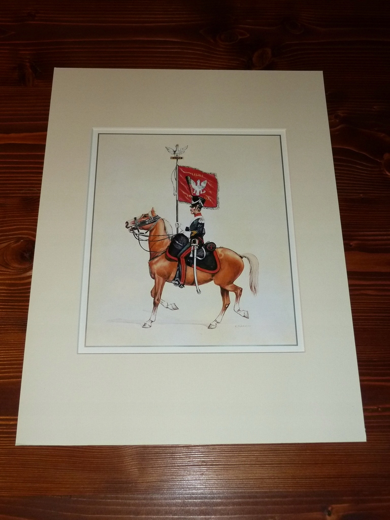 Я повинен запропонувати оригінальну ілюстрацію кабінету з кінця 20 століття від "армії герцогства Варшави". З іншого боку опис військової одиниці. Усі ілюстрації солдатів обрамлені в одному кольорі. Дуже хороший стан - знебарвлення першої ілюстрації - це недосконалості сканера.