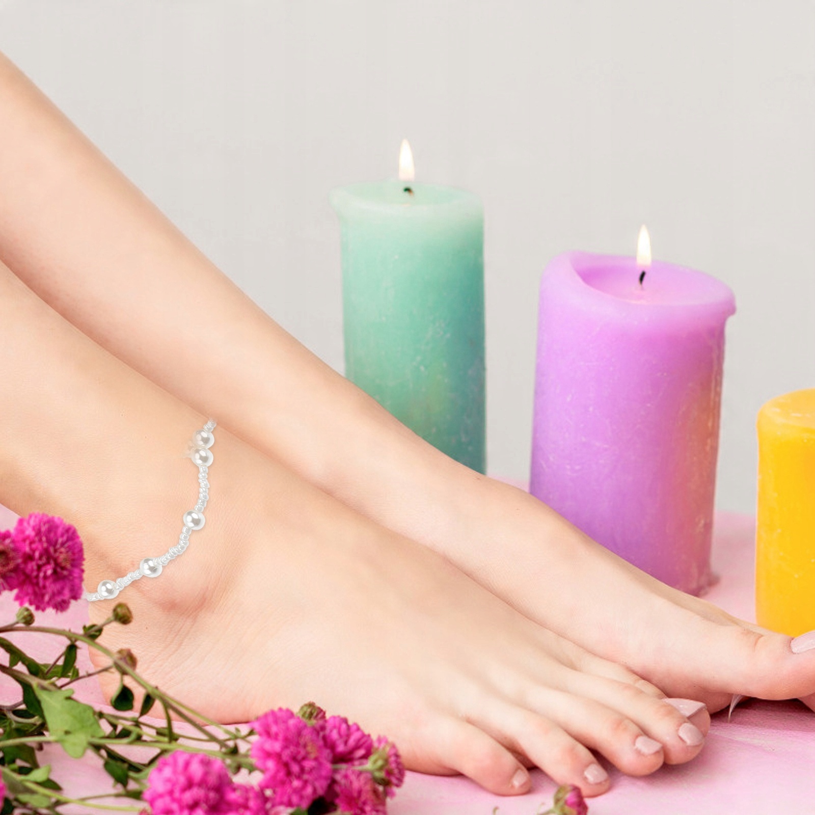 1*Оздоблені перлами жіночі пляжні босоніжки для дівчат, ланцюжок для щиколоток, прикраси для ніг
