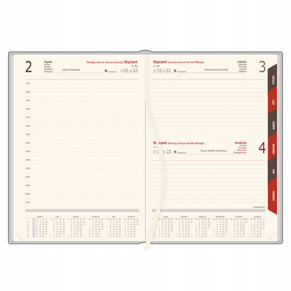 ✅ Календар: 5 мов (PL, EN, DE, RUS, FR), іменини та свята, фази місяця, світанки та заходи сонця, план на цілий рік внизу календар