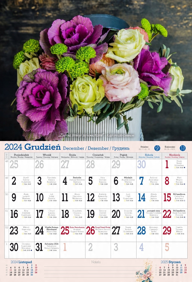 КАЛЕНДАР НАСТІННИЙ А3 2024 ОДНОСТОРОННІ КВІТИ ДЛЯ ВАС БУКЕТИ