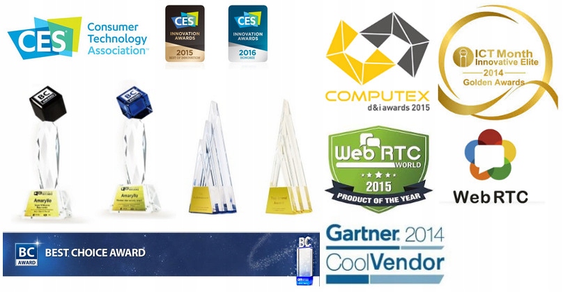 Amaryllo має сертифікати від найважливіших партнерів на ринку ІТ від Apple MFI, Microsoft Windows, Android, WebRTC, Bluetooth SIG та інших. Gartner (провідний світовий дослідник інформаційних технологій) визнав його одним із найкращих продуктів із нагородою «Cool Vender 2014». Інші нагороди включають найкращий продукт на Computex 2014, потім 1st Top Brand Award за 11-ту річницю Yushan Brand National Product Awards, золоту ICT Innovative Elite Award за 2014 рік. Продукти Amaryllo були обрані з-поміж 20 000 продуктів для категорії «Інновації у вбудованих технологіях» на CES 2015 і «Продукт року WebRTC 2015». 2016 рік приносить ще один ярмарок і нові продукти, які тільки вступають у відповідну фазу.