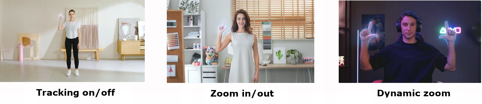 Завдяки вдосконаленій технології AI, камера не тільки слідкує за користувачем, але й автоматично адаптується масштабування, щоб зберегти її в ідеальному кадрі.