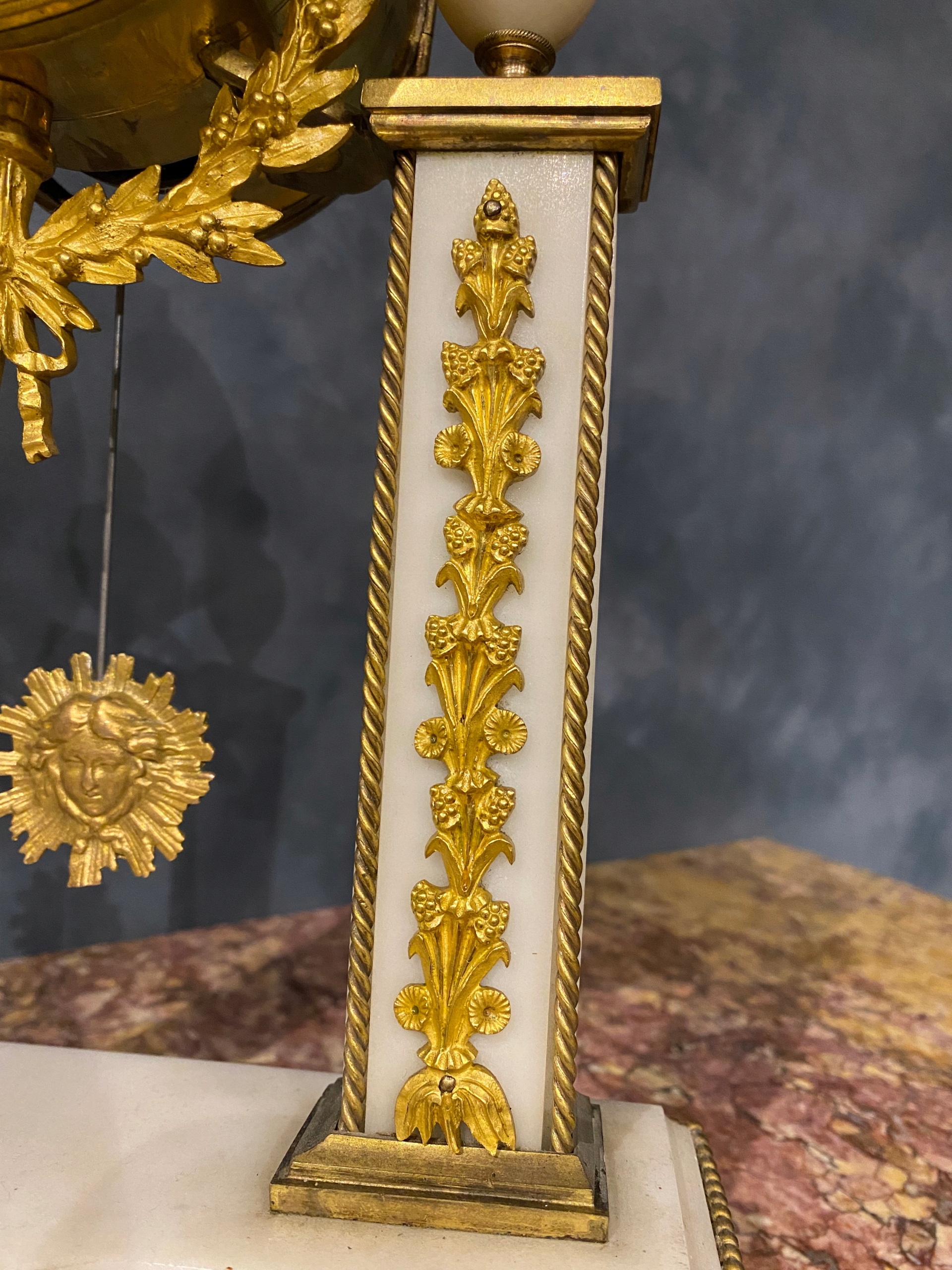 годинник, виготовлений з білого мармуру. І позолочена бронза.