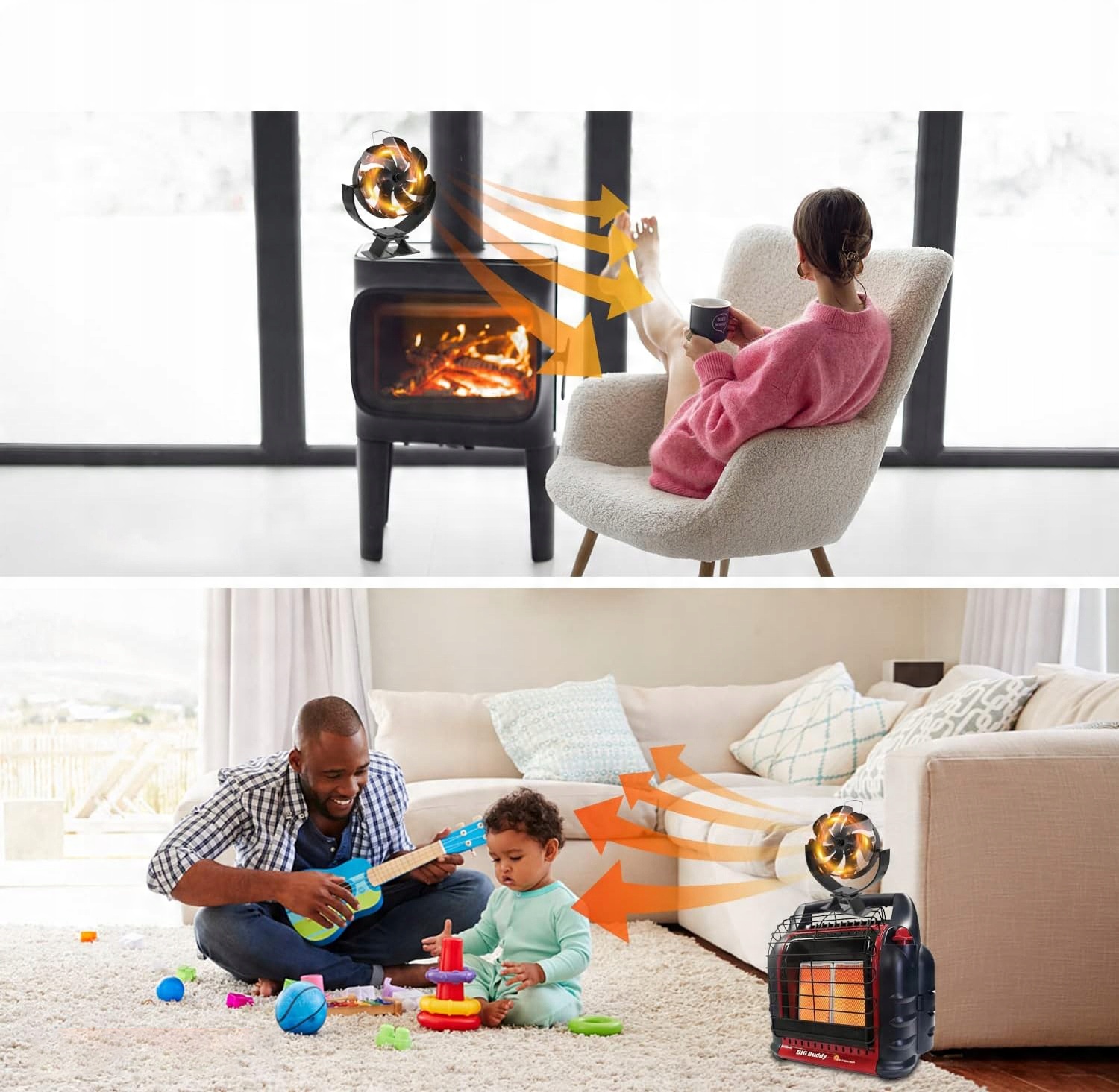 ✅Завдяки 7 лезам, Камінний вентилятор для дров’яної печі може рівномірно розподіляти тепле повітря по кімнаті, щоб зберегти тепло.