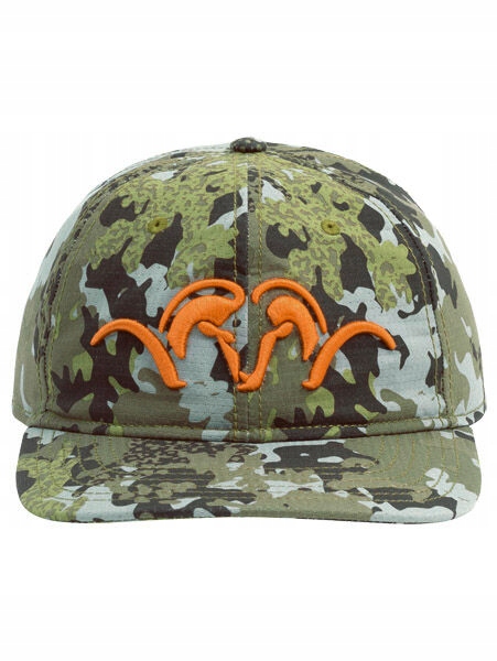 Світла камуфляжна бейсболка. Капелюх регулюється за допомогою ремінця з гачками. Спереду вишитий логотип Blaser помаранчевий.
