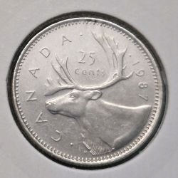 *KANADA [0240]*25 centów 1987 Elżbieta II Zwierzęta Renifer tundrowy Karibu