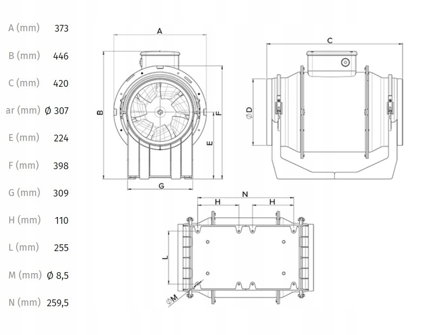 Канальний вентилятор VORTICE Lineo 315 315 мм ЗРОБЛЕНО В ІТАЛІЇ
