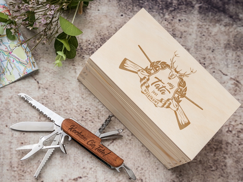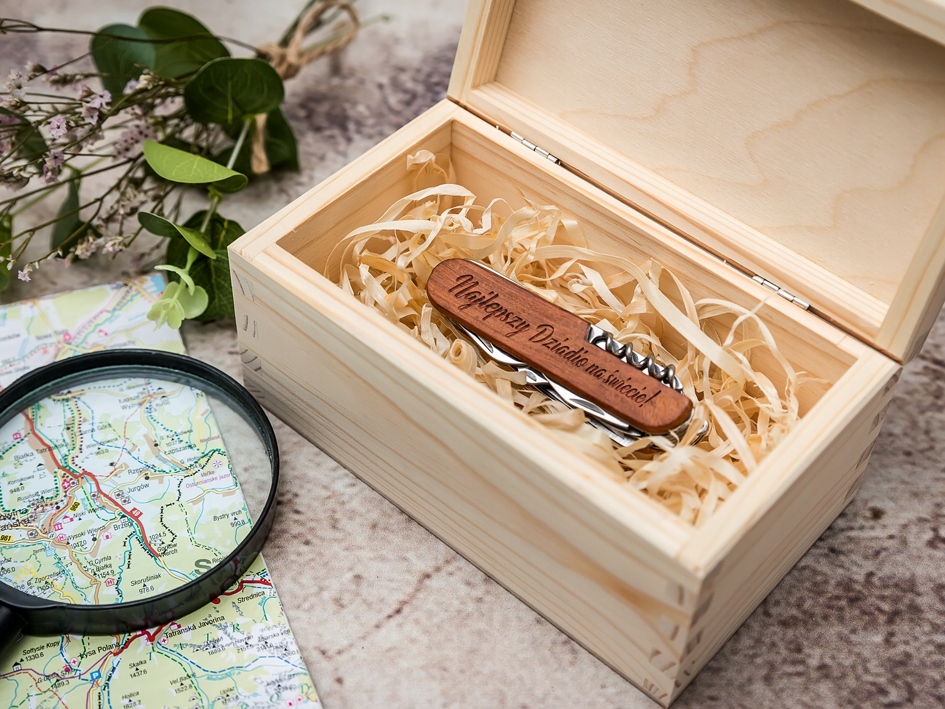 канцелярська дерев'яна скринька + ім'я з гравіюванням ПОДАРУНОК на день народження ТАТА ДІДУСЬ