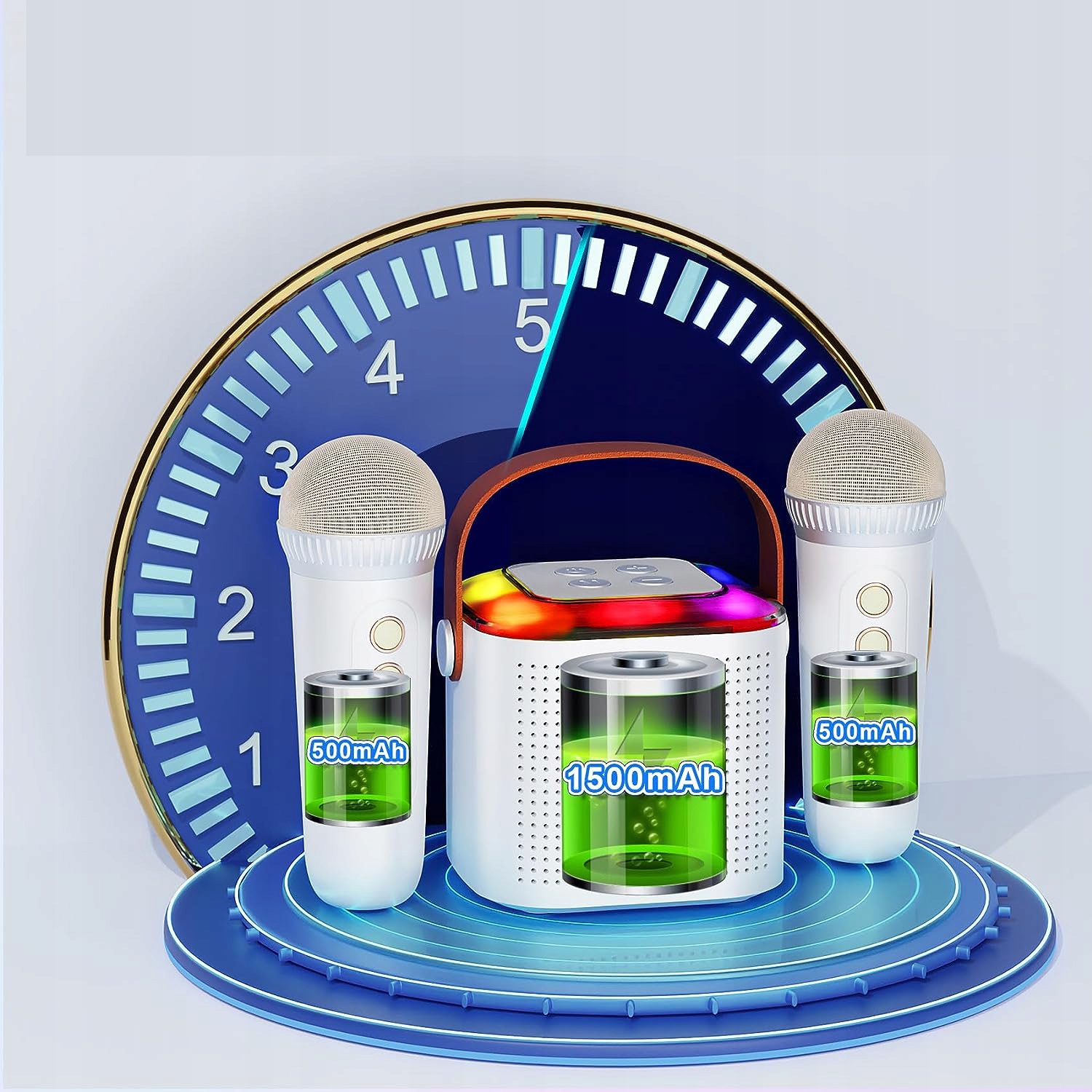 - Караоке-машина з 2акумуляторними мікрофонами може працювати від 4 до 5 b> годин після повної зарядки. Простіший у використанні, легкий і підходить для дітей. Коли ви вмикаєте телефон, мікрофон і динамік підключаються автоматично.