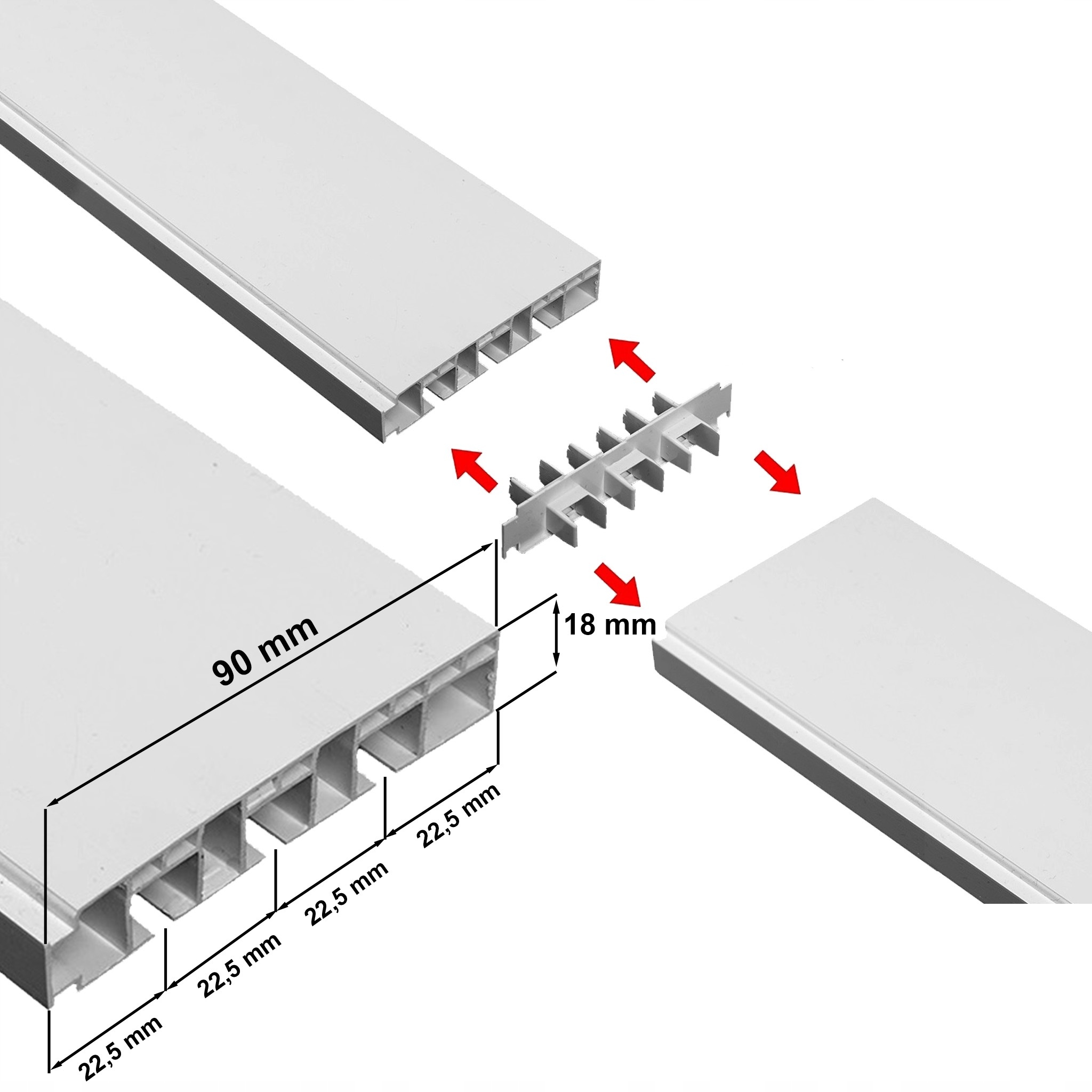 3-КОЛЕЖНИЙ (ПОТРІЙНИЙ) КАРНИЗ ДЛЯ СТЕЛІ ПВХ, ДОВЖИНА 440 см З БІЛОЮ ПВХ ПОКРИТКОЮ (ШИРИНА 9 см)