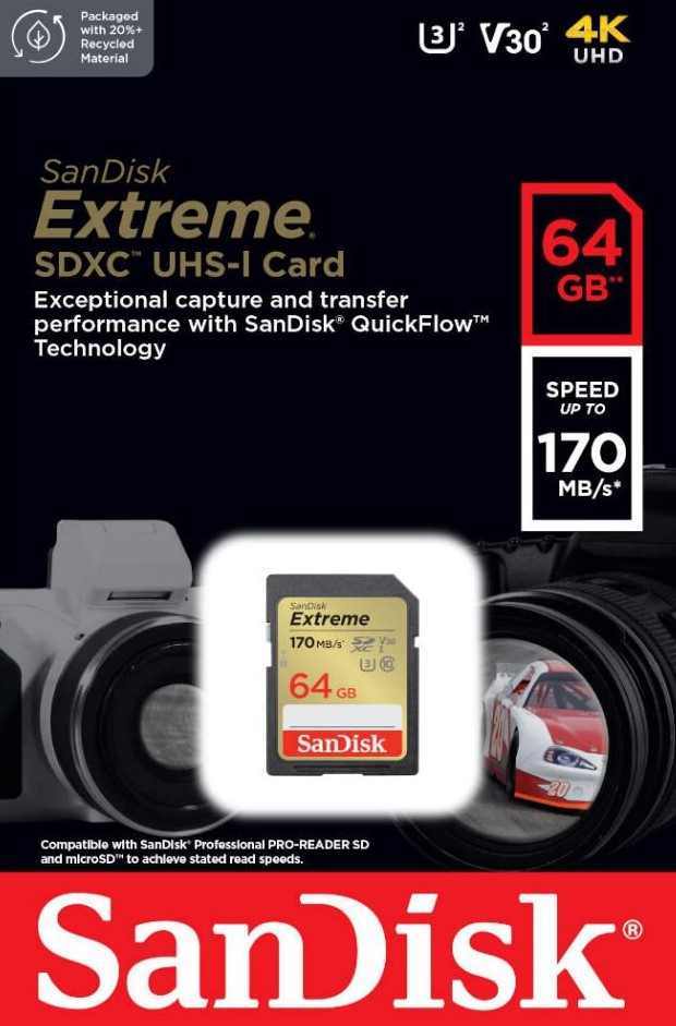 KARTA SAN DISK EXTREME SDXC 64GB 170MB/S UHS-I V30 C10 A2 U3 ADAPTER
