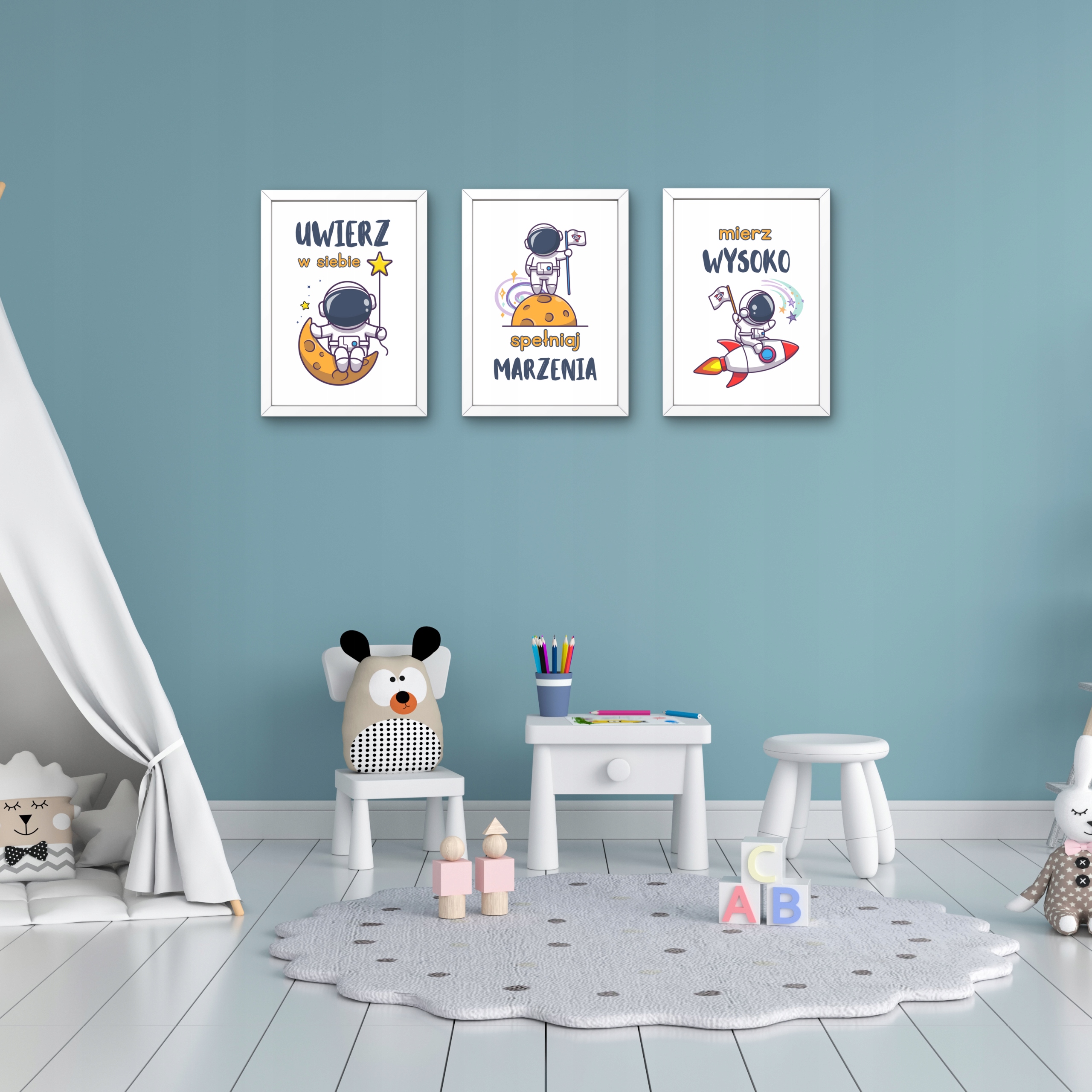 - Плакат із космічним мотивом – ідеальна прикраса для кімнати маленького дослідника світу.
