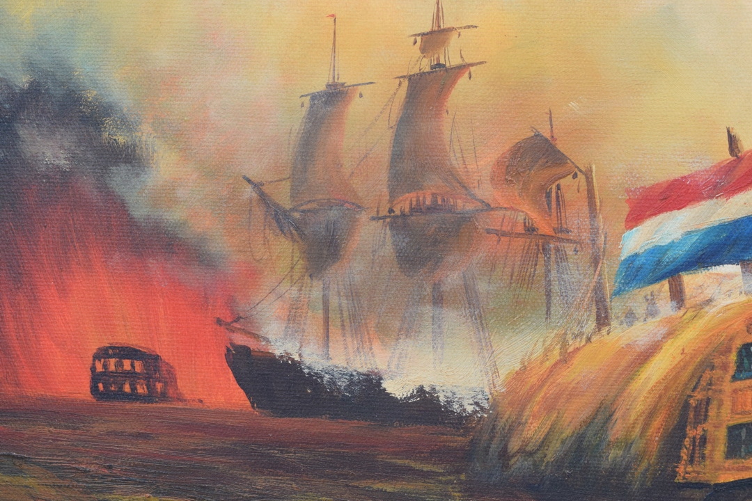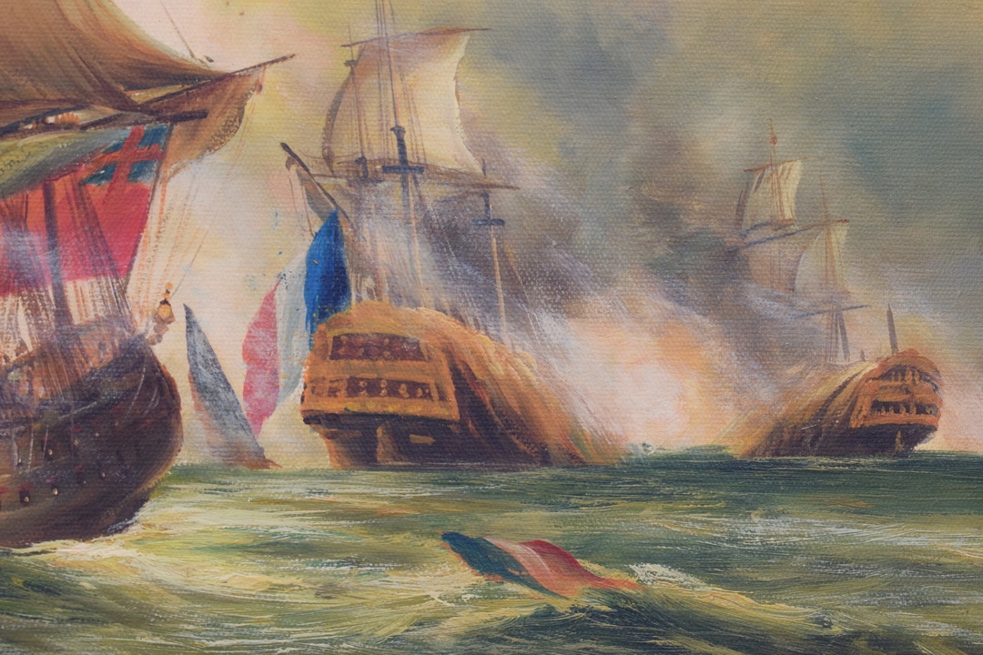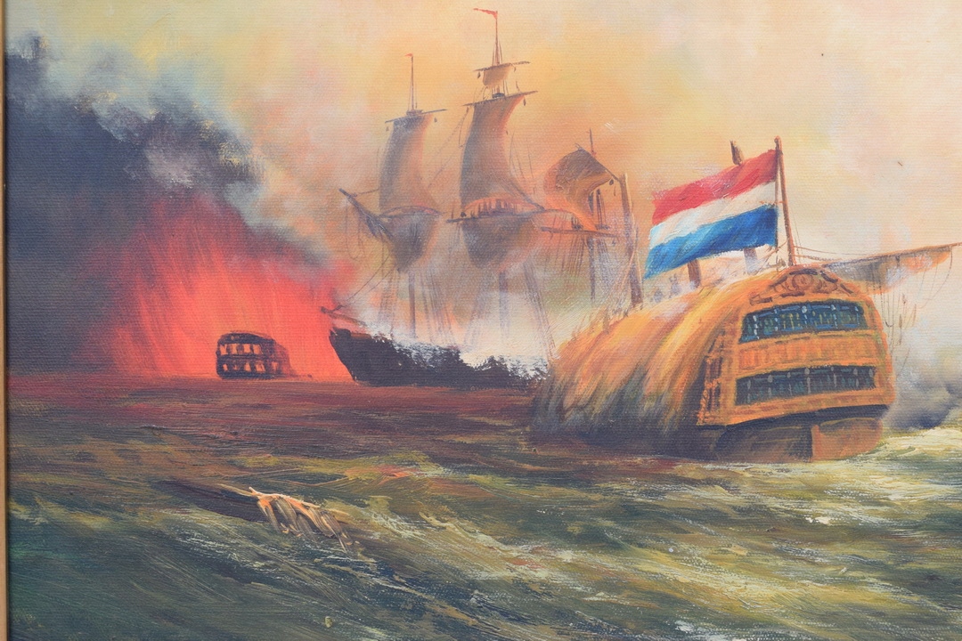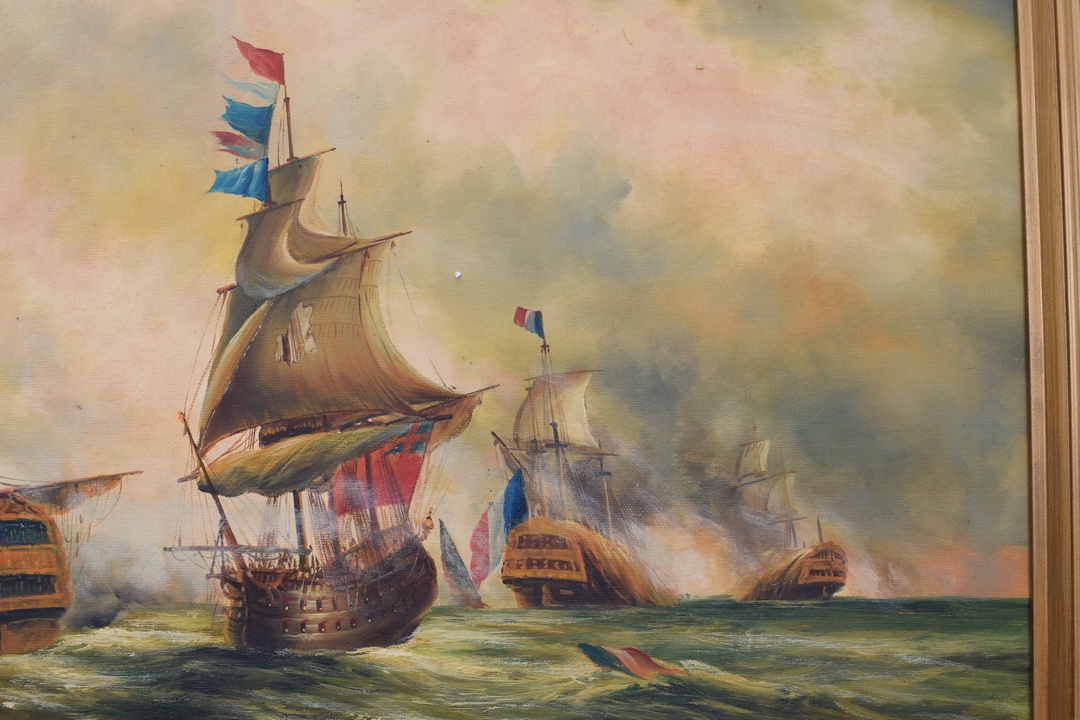 КАРТИНА МОРСЬКИЙ БИТВА - МОРСЬКІ КОРАБЛІ ПАРТІЛЬНИКИ - Позолочена рамка