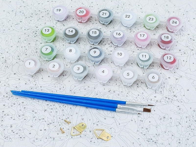 Ви, мабуть, уже знаєте цю гру з молодших класів початкової школи, це не що інше, як книжка-розмальовка з кольорами, призначеними числам. Пропонований нами набір працює за схожим принципом. На зображенні є поля з присвоєними номерами, просто знайдіть відповідні поля та розфарбуйте їх призначеним кольором із тюбика за допомогою пензля. Ефект від цієї розваги вражаючий! Навіть якщо ви не вмієте добре малювати, ви можете розфарбувати картинку як професіонал. Це все завдяки спеціально підготовленому фону, який має поля, призначені для певного кольору.