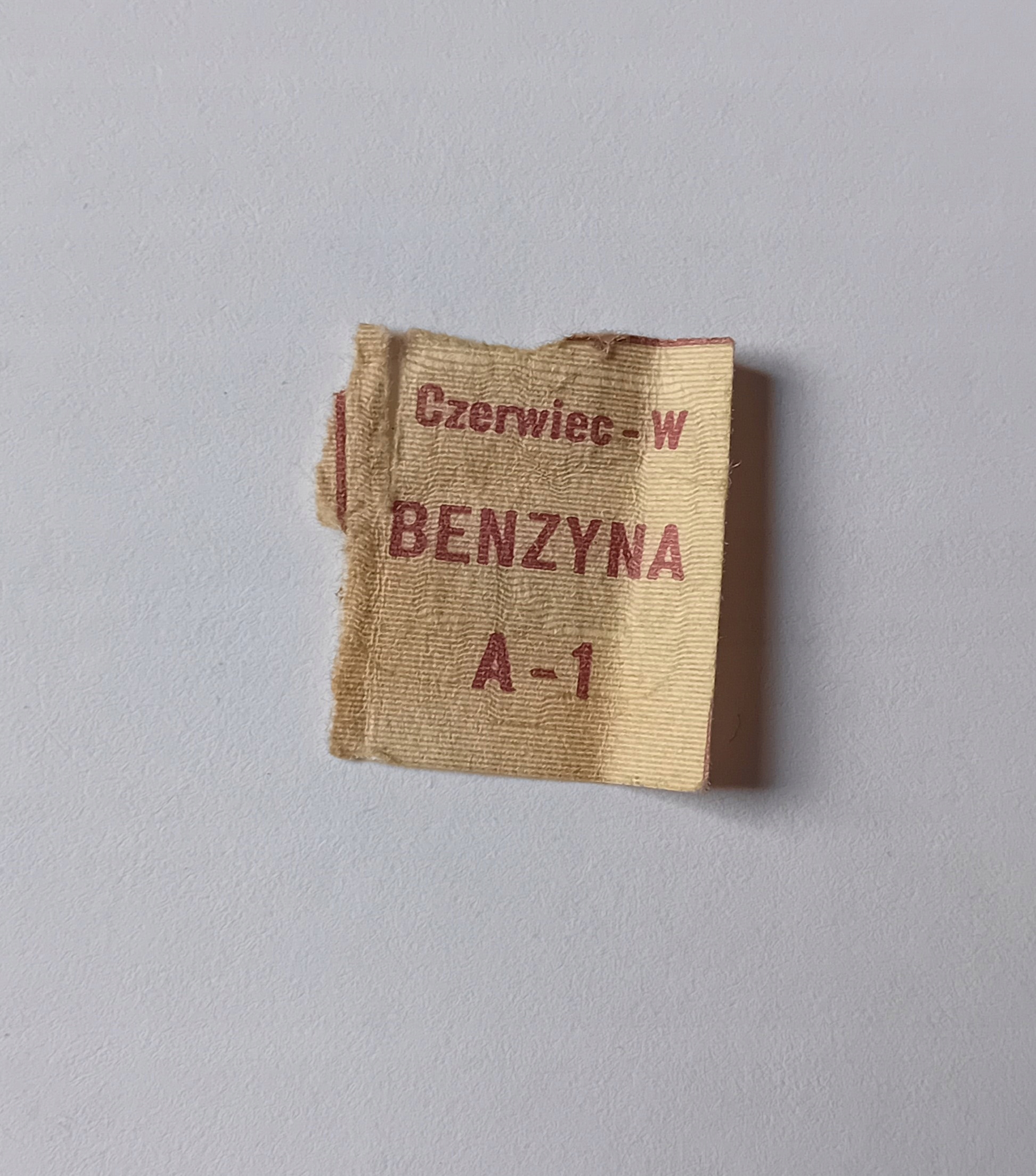 Картка бензину з Республіки польської народної республіки, купон A -1, червень - W, рік не вказаний.