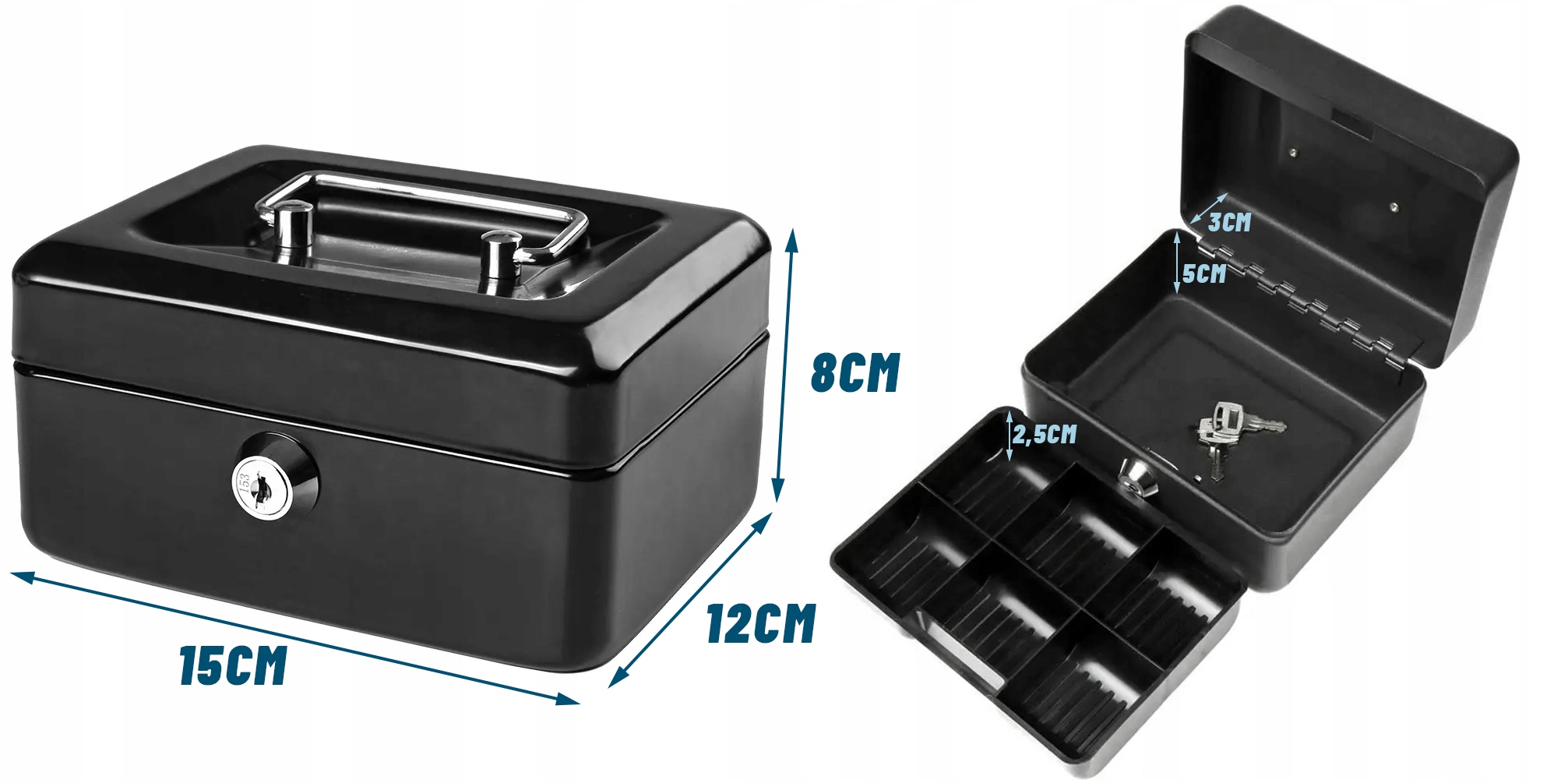 КАСЕТА МЕТАЛЕВА ДЛЯ ГРОШЕЙ, ДОКУМЕНТІВ, МОНЕТ, ЧОРНА З РУЧКОЮ