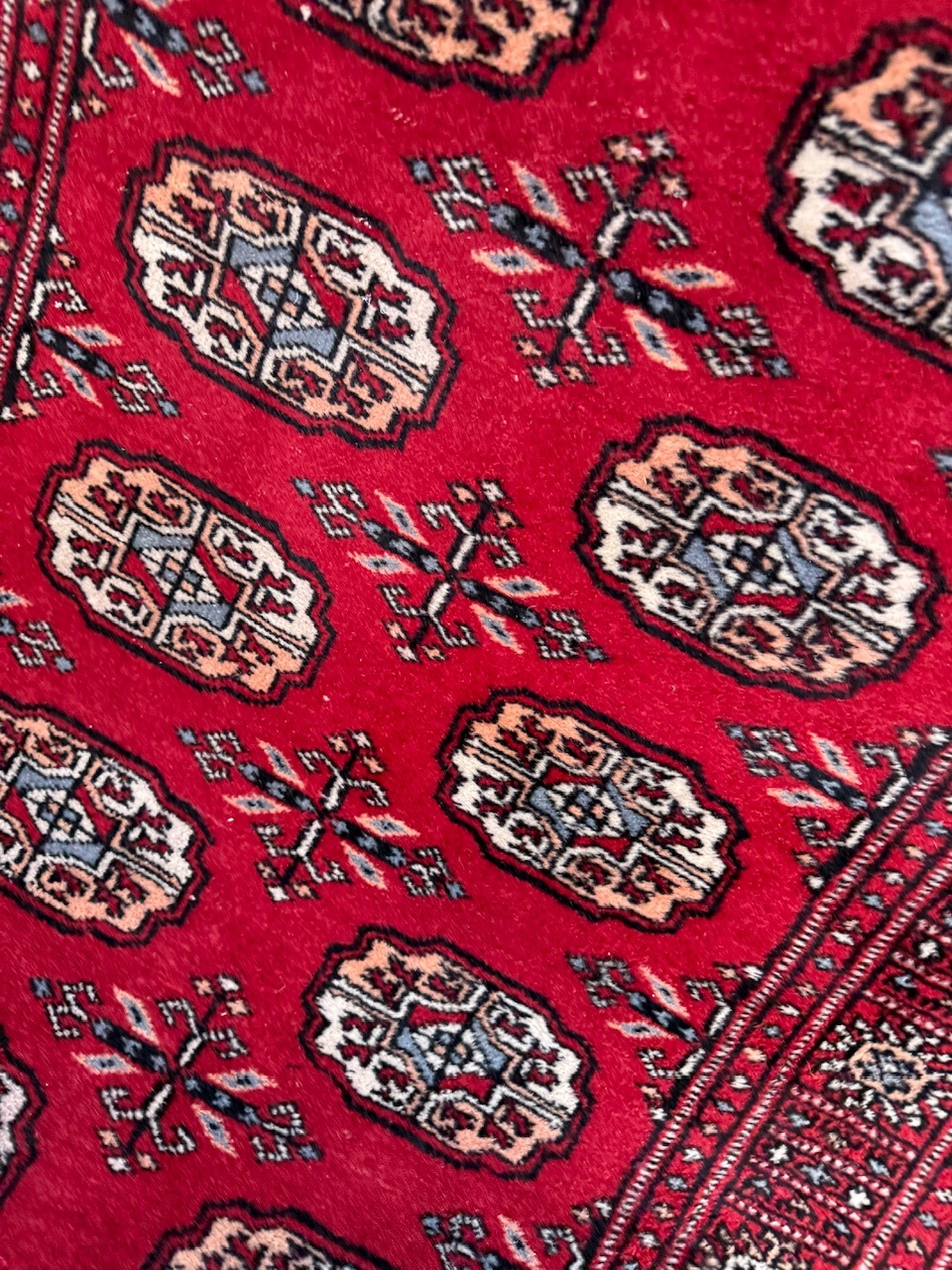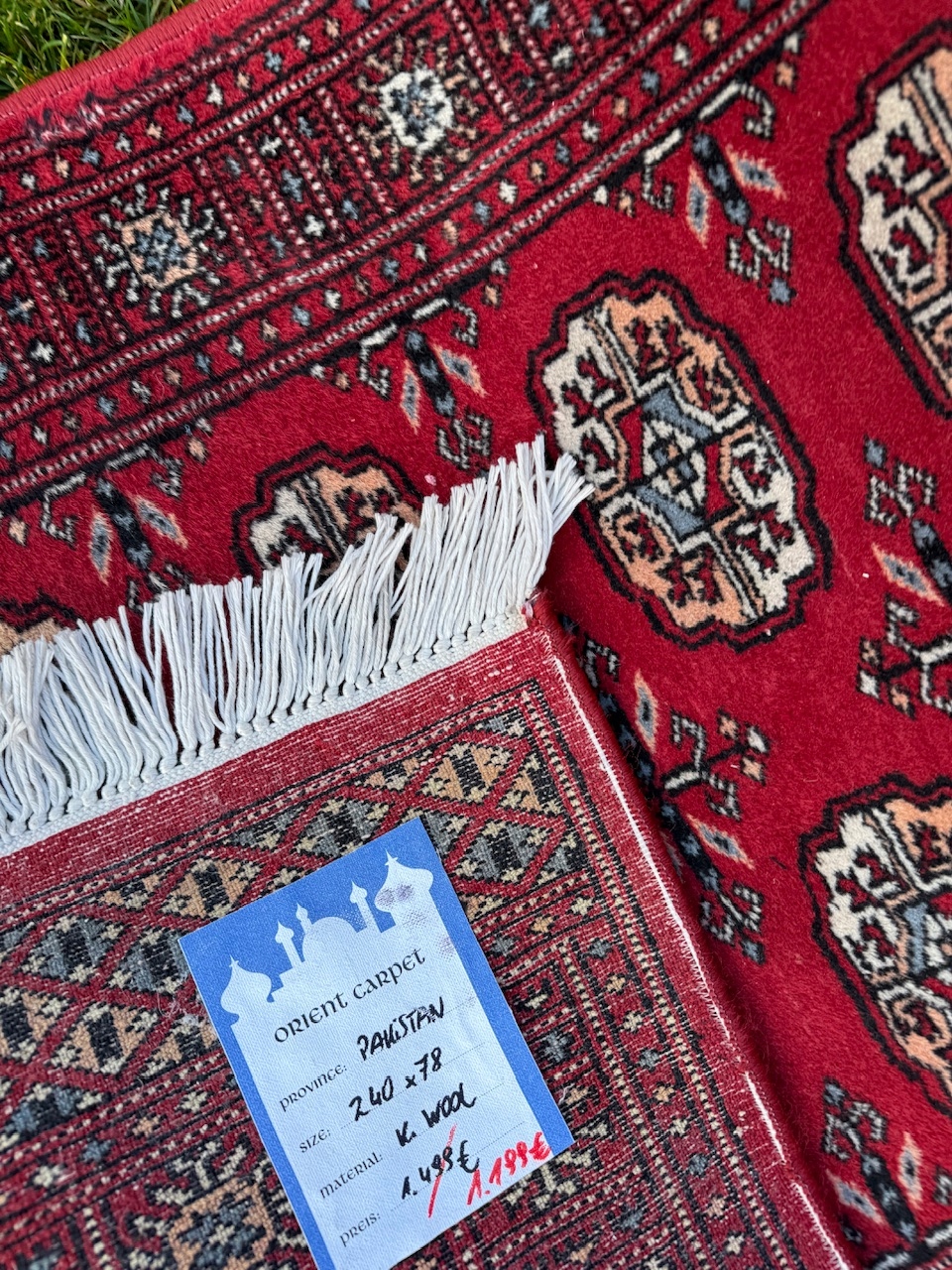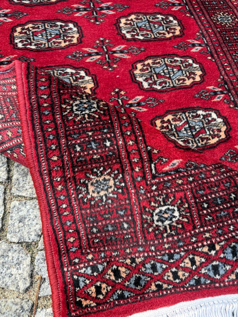 Тема: Рука -ваний килим Бучара. Оригінал зроблений у Пакистані. У ньому є тег під сертифікат RUG + Paper за запитом. У галереї, перед знижкою, вона коштувала 1500 євро або близько 7000 PLN. є унікальним через його схему. Це дуже високий килимок класу.