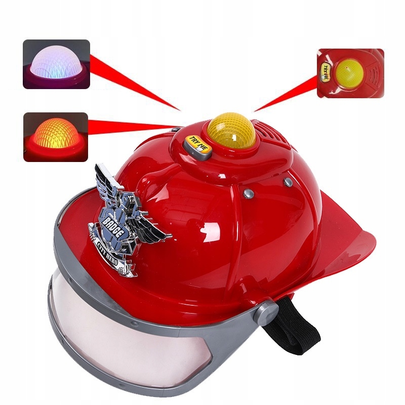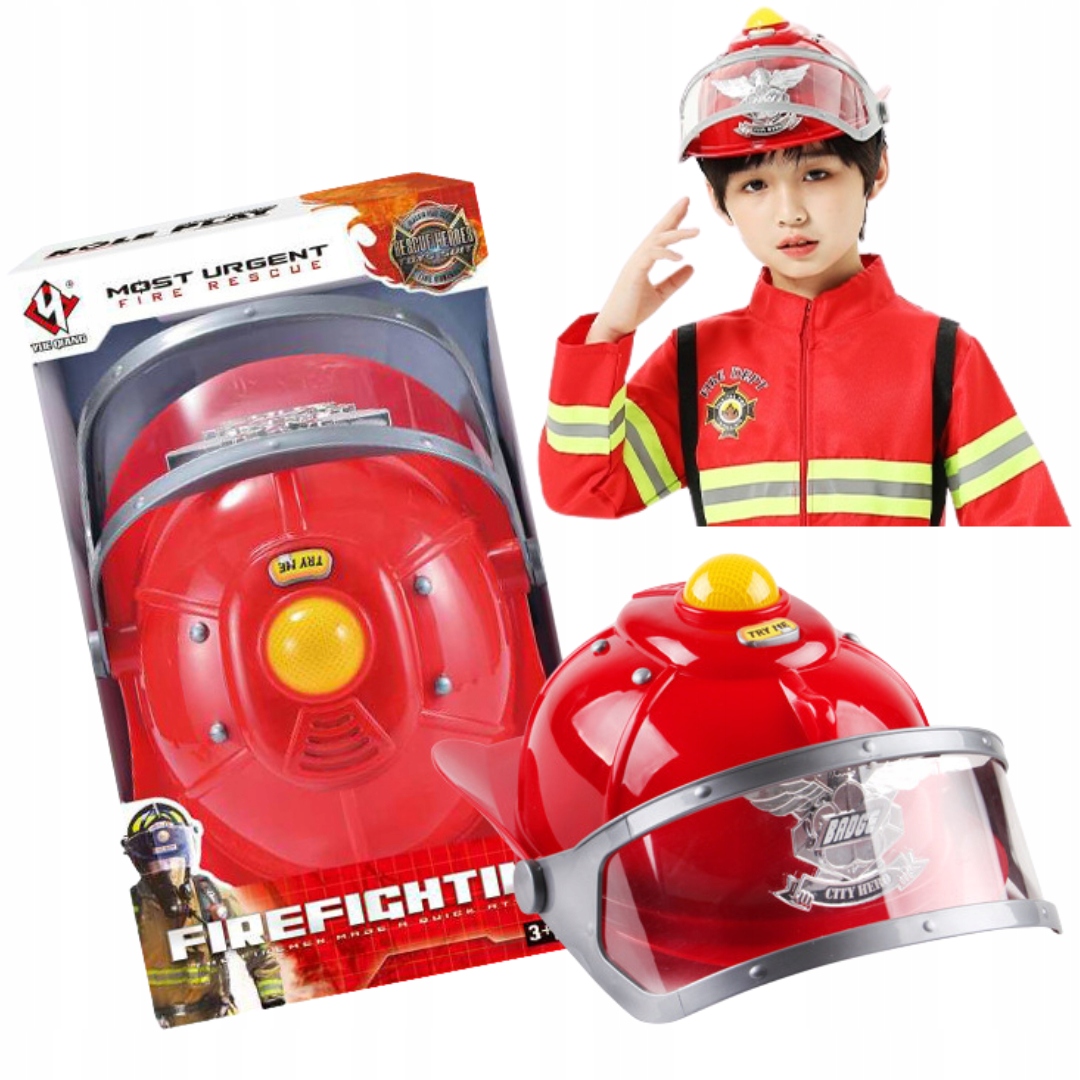 KASK STRAŻACKI Z DŹWIĘKAMI ŚWIATŁEM HEŁM DLA STRAŻAKA DZIECI SYGNAŁ CZAPKA