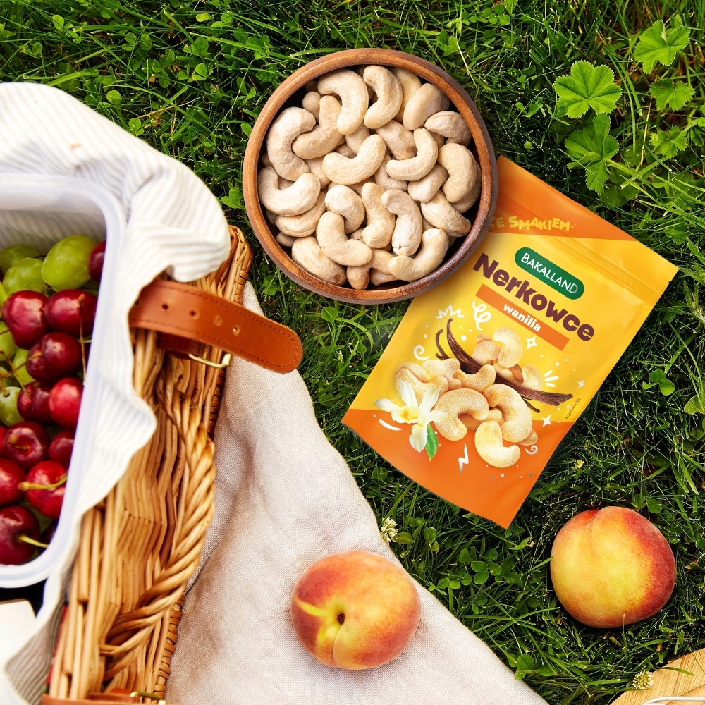 Bakalland Cashews, обсмажені з додаванням ванілі, виготовлені з найвищої якості інгредієнтів, без штучних консервантів. Вони ідеальні як елегантна закуска або доповнення до десертів.