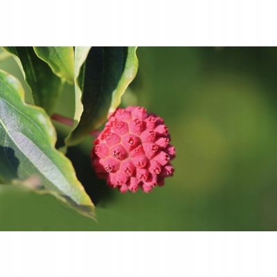 Це Цвіте в червні дрібними зелено-жовтими квітками, зібраними в головчасті суцвіття. Однак справжньою окрасою куща єспочатку білі, пізніше стають рожевими, гострозагострені, зібрані в 4 квіткові приквітки. під кожною квіткою, яка опадає після того, як квіти зів'януть.