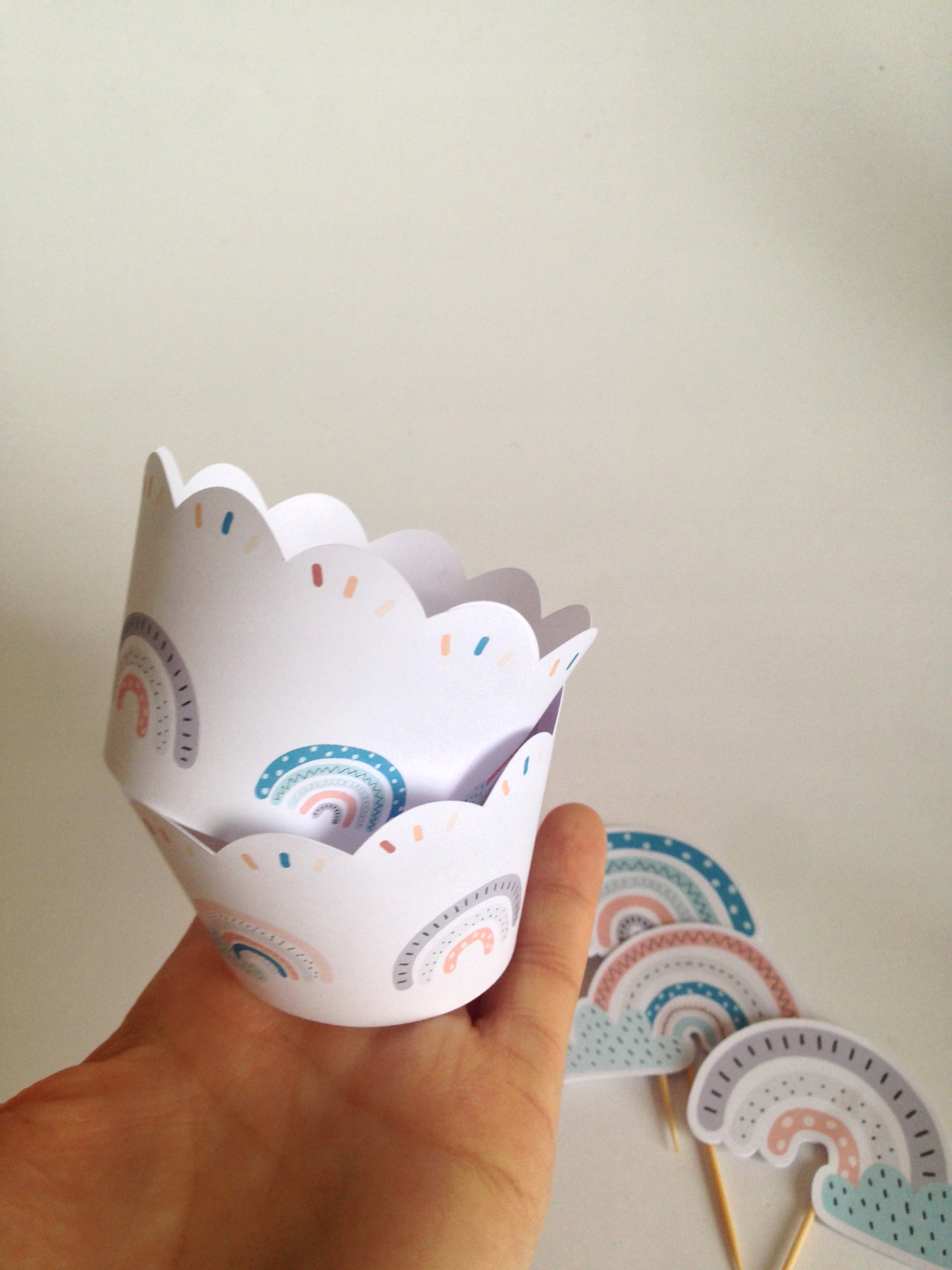 кекси з веселковим мотивом у стилі Бохо. Делікатні пастельні кольори, ідеально підходять для прикраси вашої випічки на солодкому столі. Вони красиво прикрасить ваші солодкі закуски.