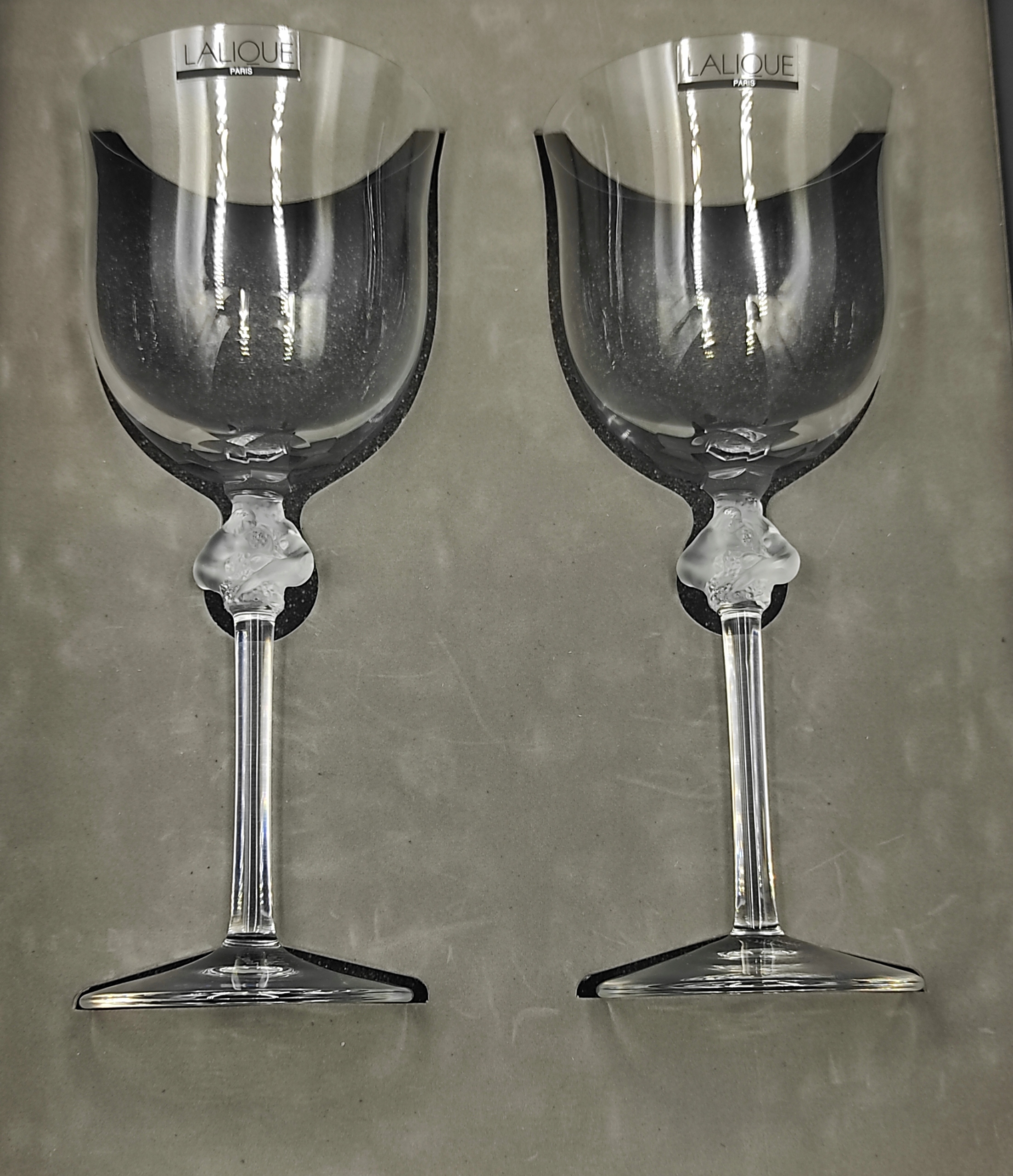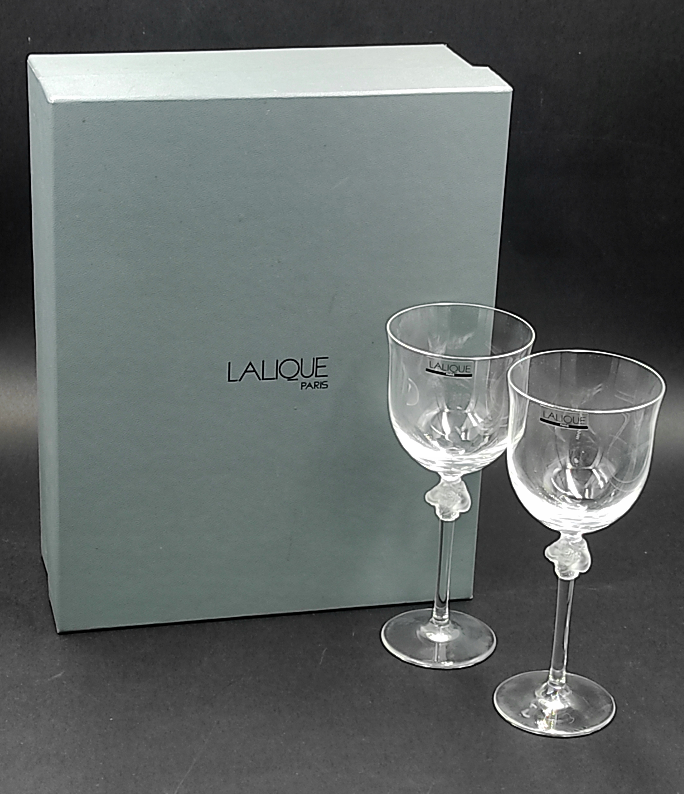 Представляємо вашій увазі ексклюзивний набір з двох фужерів виробництва чудової, всесвітньо відомої французької мануфактури LALIQUE, модель Roxenne, упакованих в оригінальну коробку Lalique.