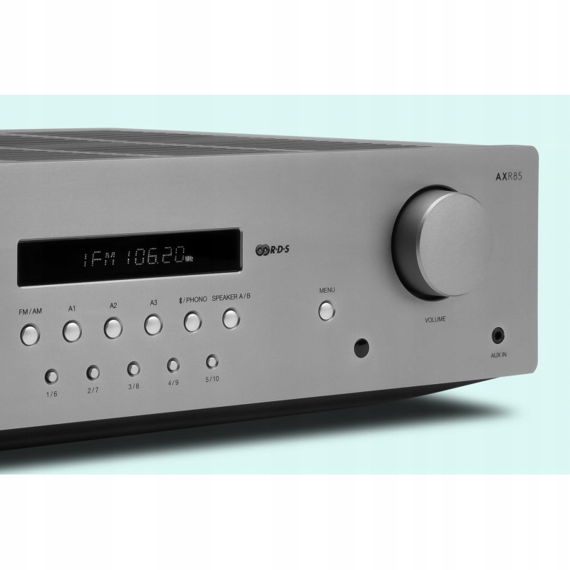 Axr85 provides 85 W Pułą Pułą, it is equipped with a gramophone preamplifier for inserts with a movable magnet, front input 3.5 mm supporting IPOD/MP3 players, built -in FM/AM TUNER 30 stations and four analog inputs for connecting AV devices and audio джерела. Крім того, вбудований приймач Bluetooth дозволяє передавати музику зі смартфона, планшета або ПК.