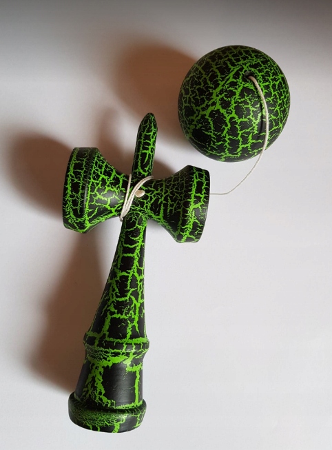 Кендама виготовлена з молотка (кен) із довгим наконечник (шип) і ручки з поглибленнями (чашки).
