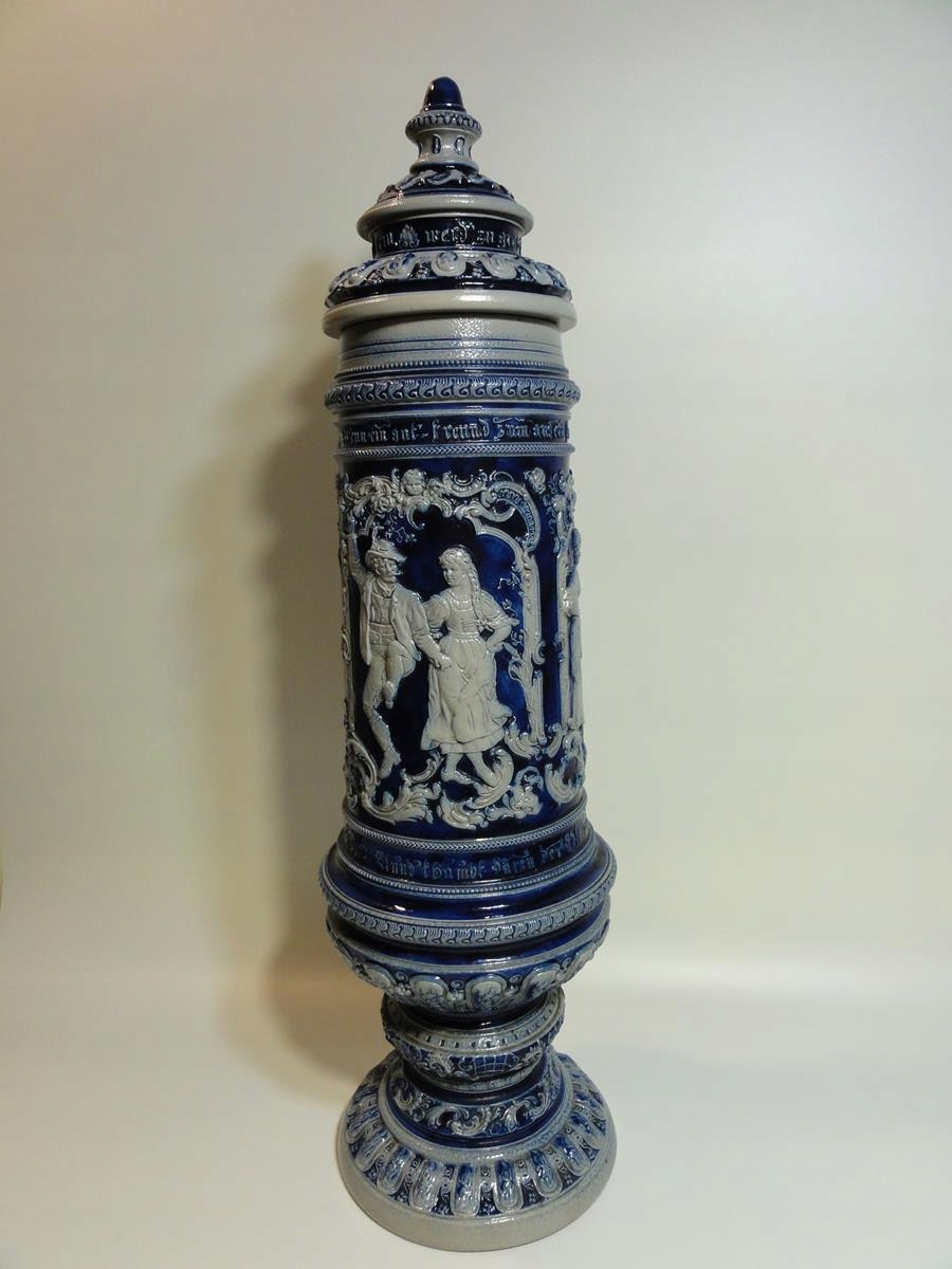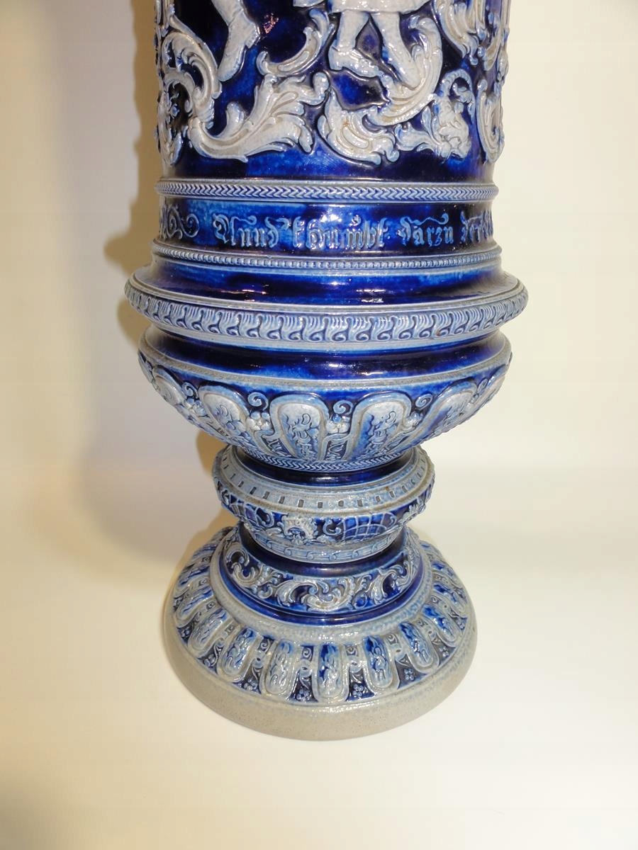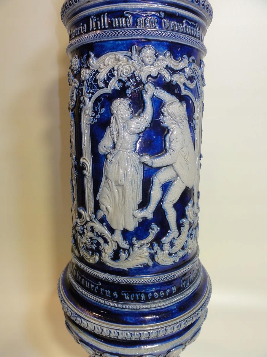 *велика керамічна амфора з рельєфними жанровими сценами – танцівницями, розписаними кобальтом,