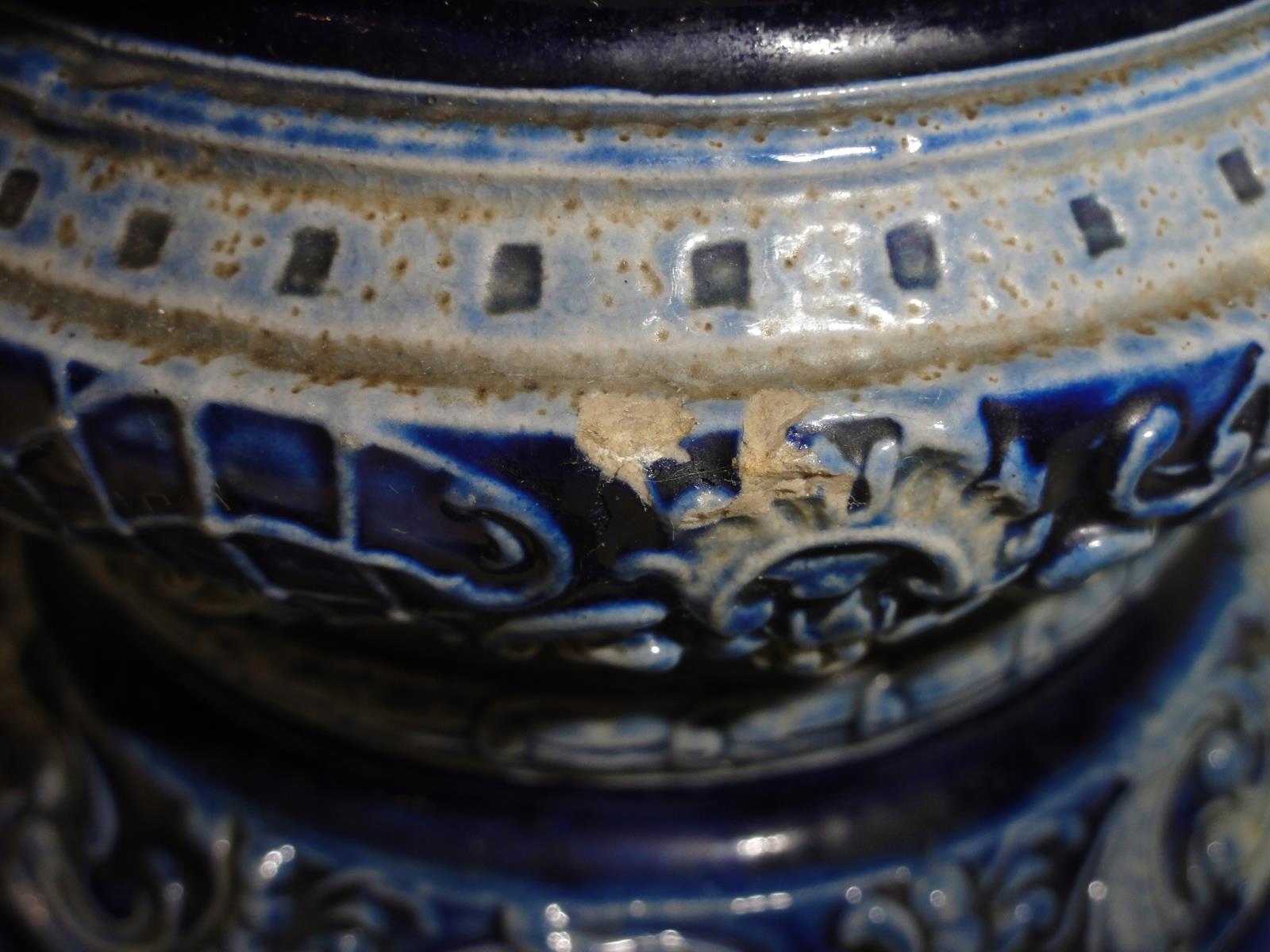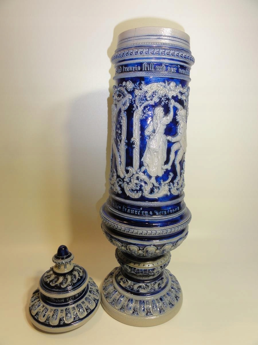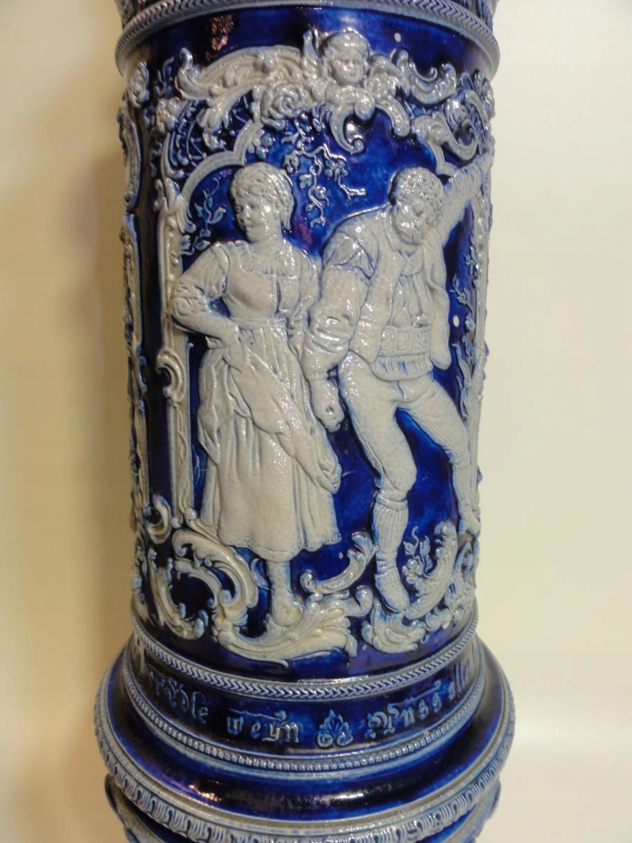 *велика керамічна амфора з рельєфними жанровими сценами – танцівницями, розписаними кобальтом,