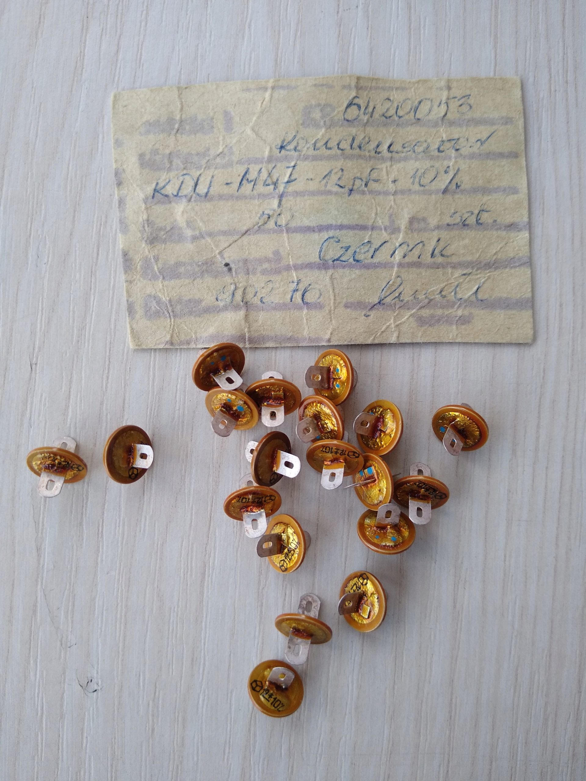 для продажу керамічних конденсаторів 12pf 10% виробництва цераду, виготовленого з матеріалу M47. Кадздер має діаметр 10,3 мм Кінці відведення з обох сторін = 13 мм з написом ємності -це така шестикутник та трислівні лінії посередині, дві сині крапки з іншого боку. Ціна на один набір, тобто 10 штук