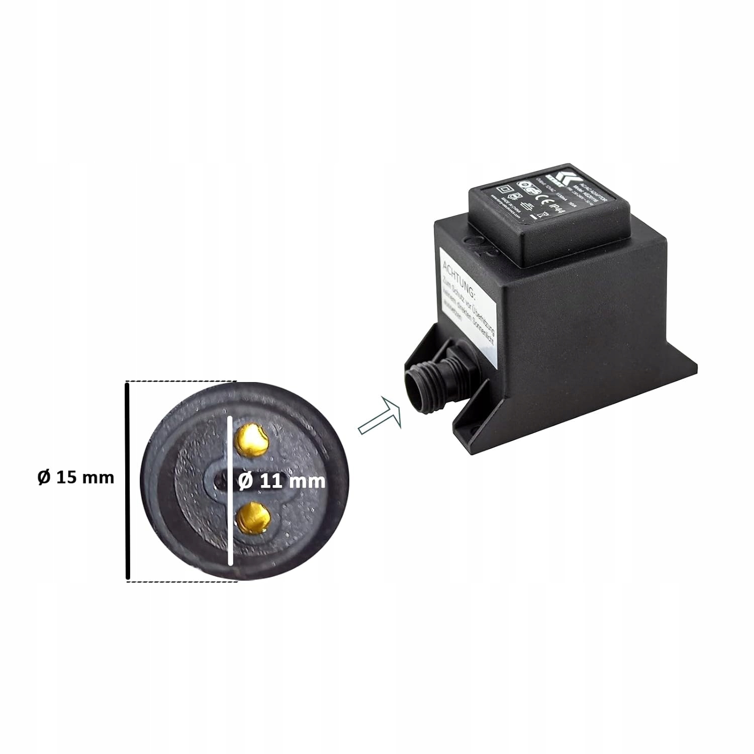 IP44 підходить для зовнішнього використання. Серед інших для світлодіодних освітлення та суглобових насосів. Змінний струм AC / AC. 30 Вт/VA - 2 -ПІНСЬКА СИСТЕМА ПЛАТУ. Трансформатор 12 В від Kerry Electronics.