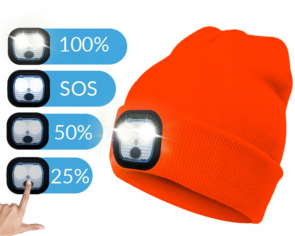 Шапка-біні зі світлодіодним ліхтариком, який світить у трьох режимах!