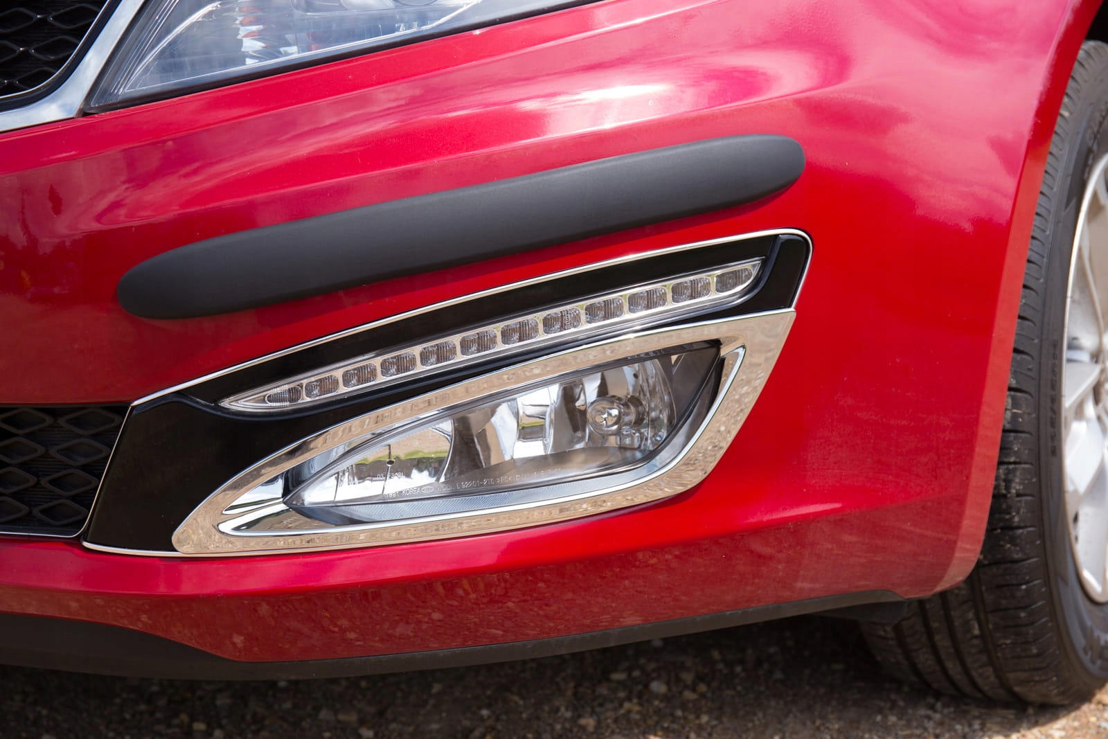 Стилістичні накладки підкреслюють форму передніх протитуманних фар. Поєднання дзеркального блиску хромованої поверхні з динамічною лінією накладок надає протитуманним фарам стильну, елегантну обстановку, ідеально відповідну характерному, спортивному стилю KIA. Вони додають фарам візуальну глибину, роблячи їх справжньою окрасою передньої частини автомобіля. Планки ідеально поєднуються з іншими елементами обробки KIA, завдяки чому їх використання дозволяє досягти цілісного, виразного стилю автомобіля.