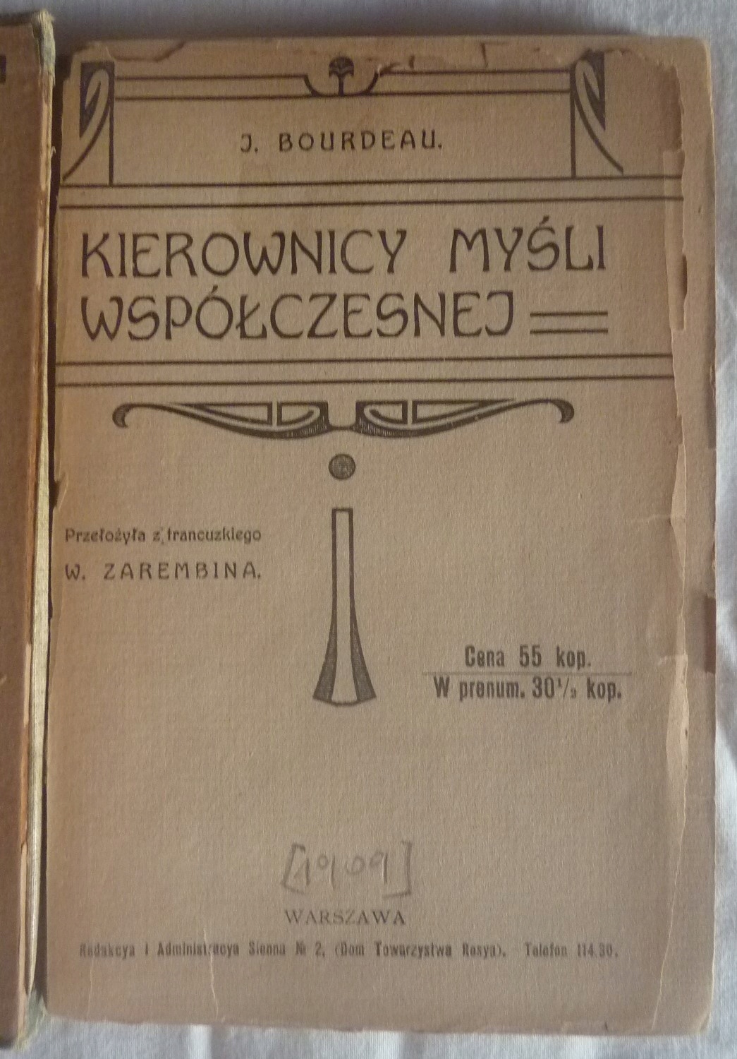 Kierownicy myśli współczesnej - Bourdeau Jean 1909 rok