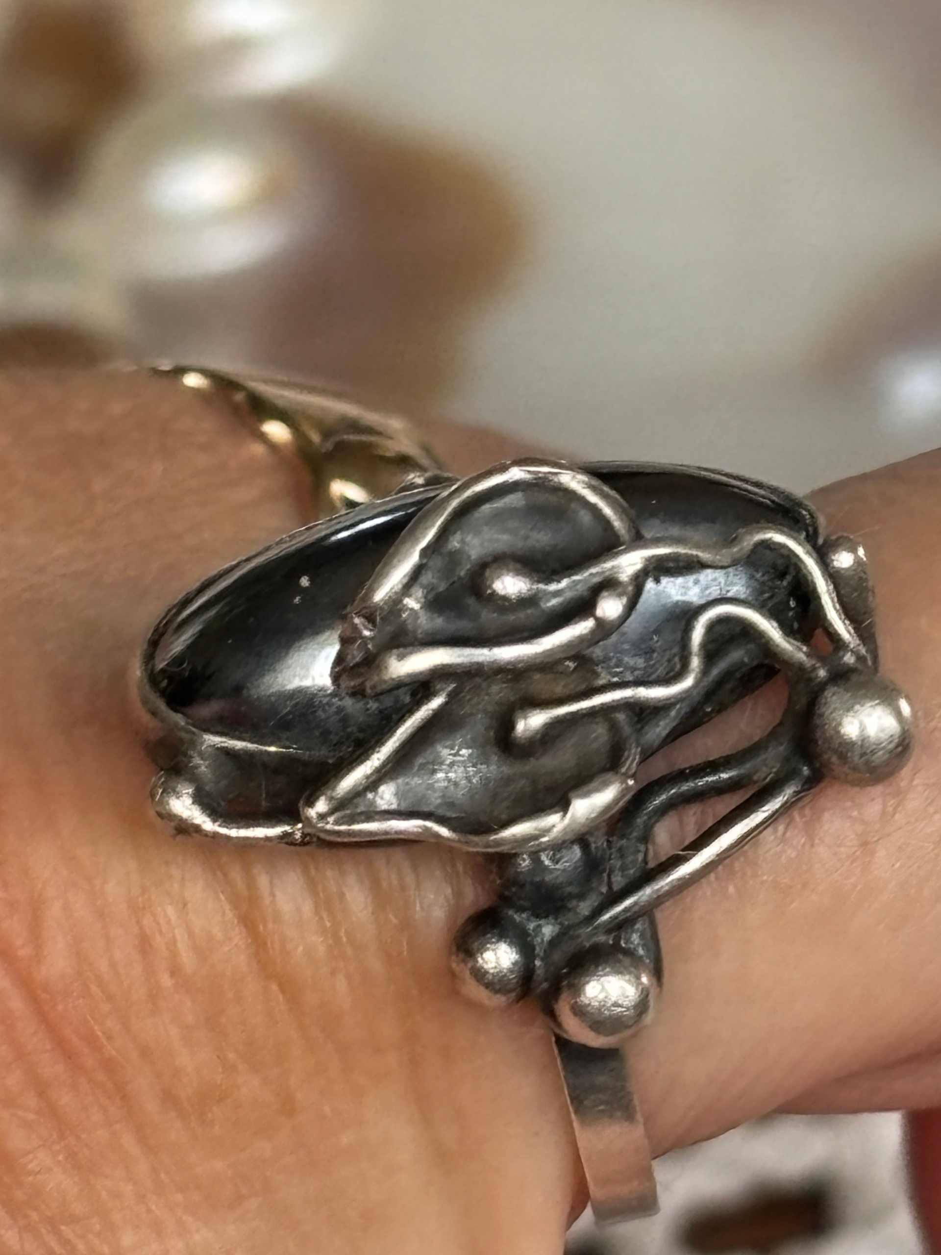 срібне кільце з гематитом
