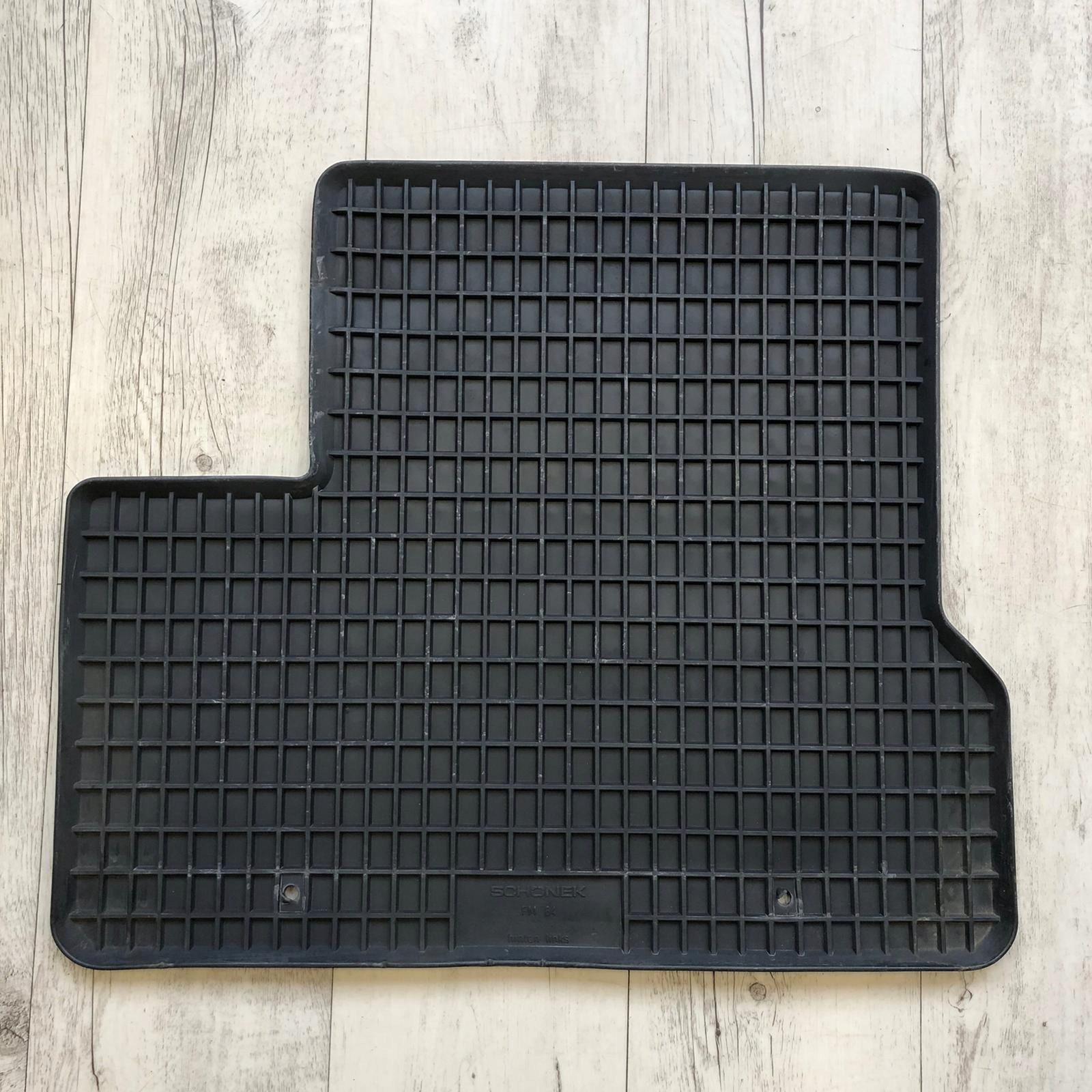 Гумові килимки SCHONEK виготовлені з суміші гуми та каучуку найвищої якості, що робить їх більш стійкими до стирання. Матеріал не має запаху і не виділяє неприємного запаху навіть при високій температурі. Килимки ідеально підібрані під форму підлоги конкретної моделі автомобіля. Додатково на дні є шорстка структура, завдяки якій килимки залишаються на місці. Сітчаста текстура килимів добре утримує воду.