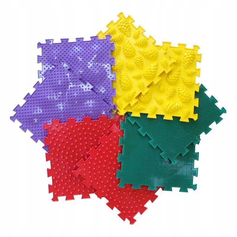 Ортопедичний набір складається з різнокольорових модулів, елементи килимка з'єднані між собою як пазл. Їх можна використовувати як вдома, так і в дитячих закладах з інструктором. У набір входить 8 модулів з різною поверхнею.