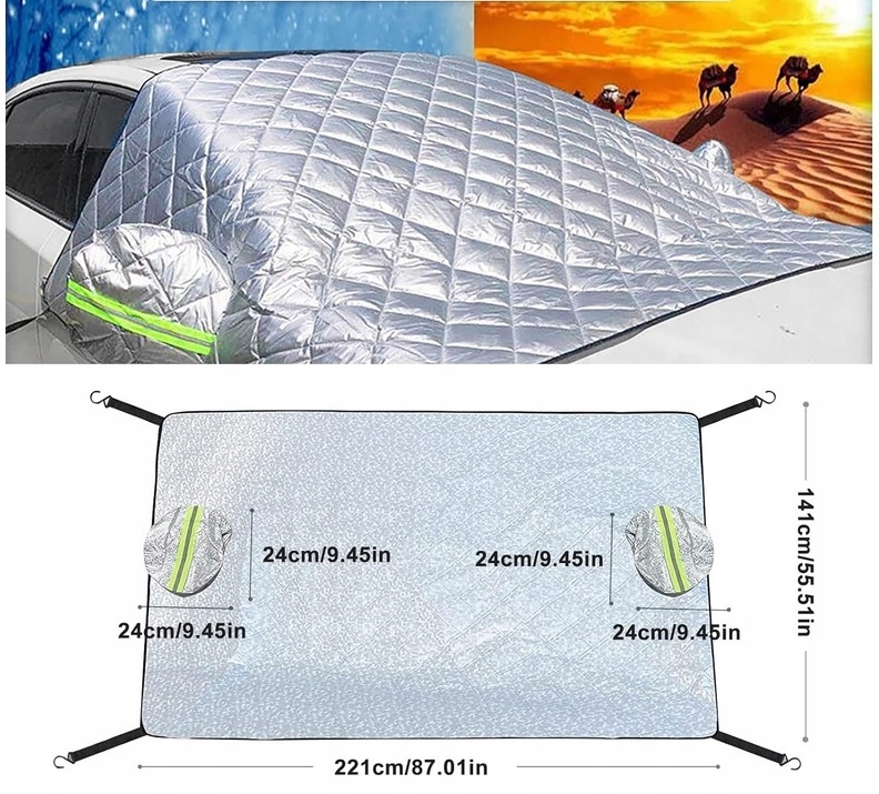 - Чохол підходить для будь-якої пори року, він чудово захистить ваше лобове скло від замерзлого снігу. Влітку температура всередині буде значно нижчою.